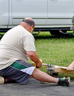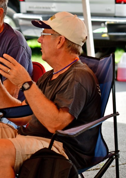 The Minnesota crew of Pat Galarneault, Pat Redig, and Ron Gage with Santiago Panzardi from Ohio, waiting for the trailer to arrive for the next heat.