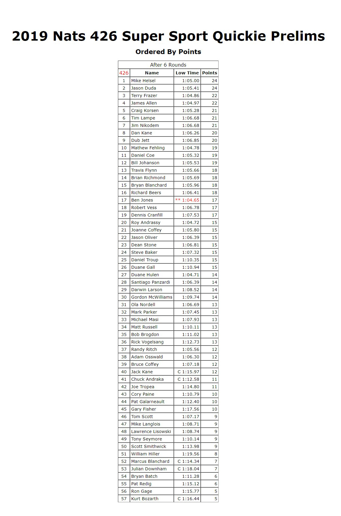 This year for qualifying, Mike Condon and Chuck Andraka decided to try a single matrix. They decided to fly eight rounds of qualifying and five rounds of finals. The top 26 in qualifying advanced to the finals and two wildcards were also allowed to compete. The two wild cards were the 27th place and the next fastest time outside of the top 27. The two people that benefitted from the wild card this year were Duane Hulen and Randy Ritch.