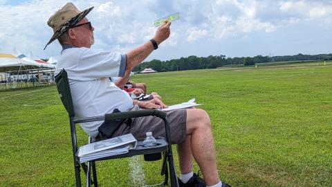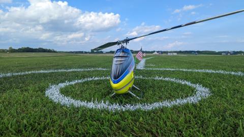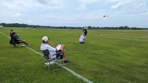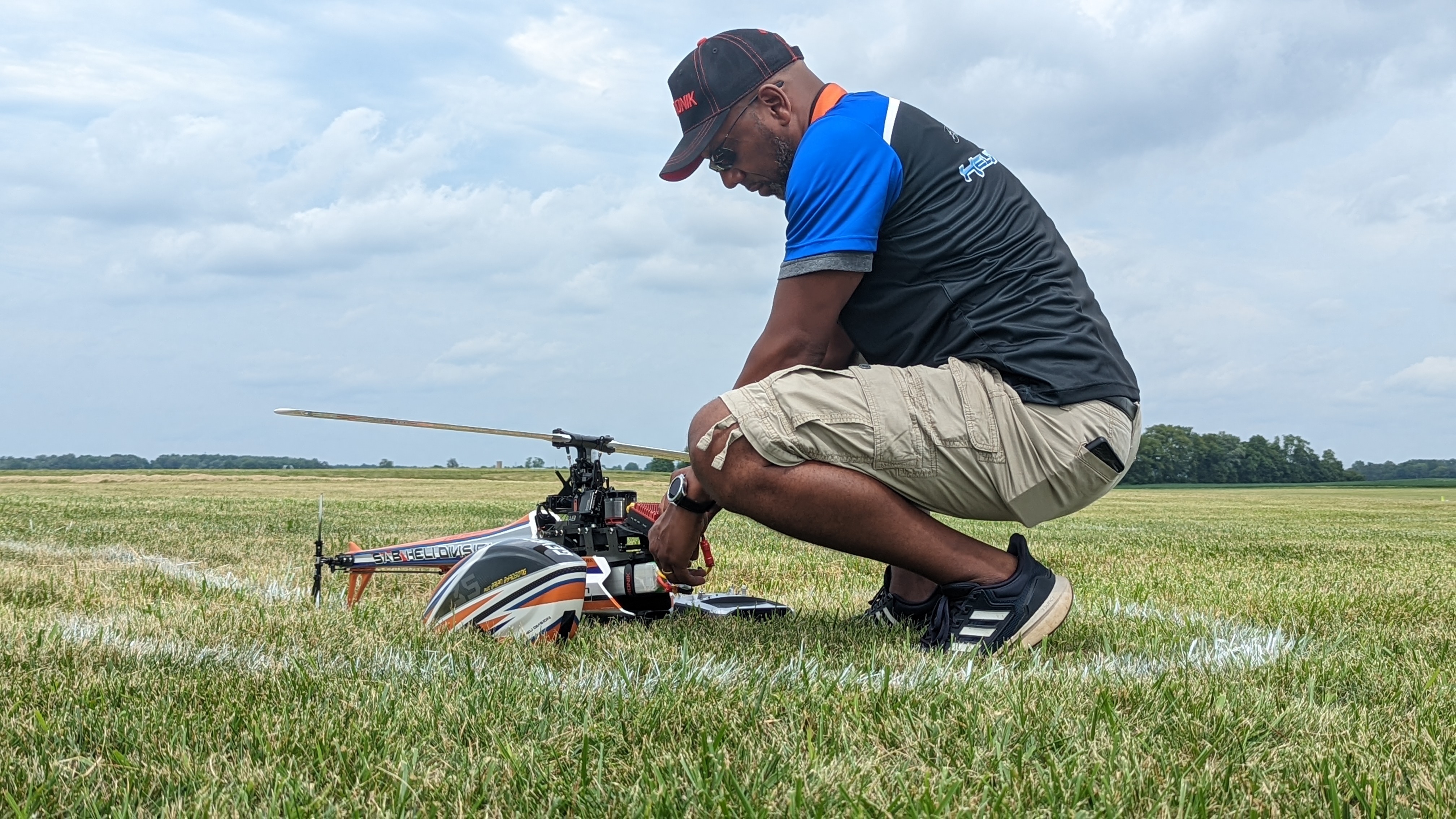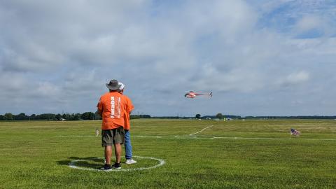 We started Monday, August 8, the first day of the 2022 RC Helicopter Nats, with a partly cloudy sky and wind coming from the southwest, with a steady wind of 11 mph.