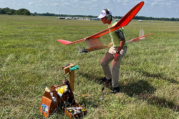 The 2024 AMA Outdoor Free Flight (FF) Nats wrapped up with the final day of official flying on Friday, July 26. The weather remained excellent for flying with mostly sunny skies, high temperatures in the low 80s, and winds ranging from 4-8 mph. The one negative was the wind direction—out of the east. This made for a short chase to the west side of the field (and the corn and trees beyond it), scarcely half a mile away. A number of models ended up in the corn and had to be retrieved via radio or GPS.