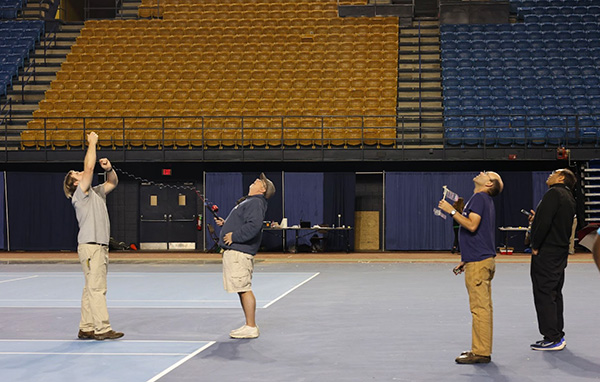 An unseen but important job at an indoor contest is to constantly check that air handlers stay off and doors stay closed so that the air inside the building remains stable. This was a community effort at the Nats, but whenever support was needed to interface with ETSU’s athletic programs, David Lindley made sure that we maintained flyable air and a good relationship with our hosts.
