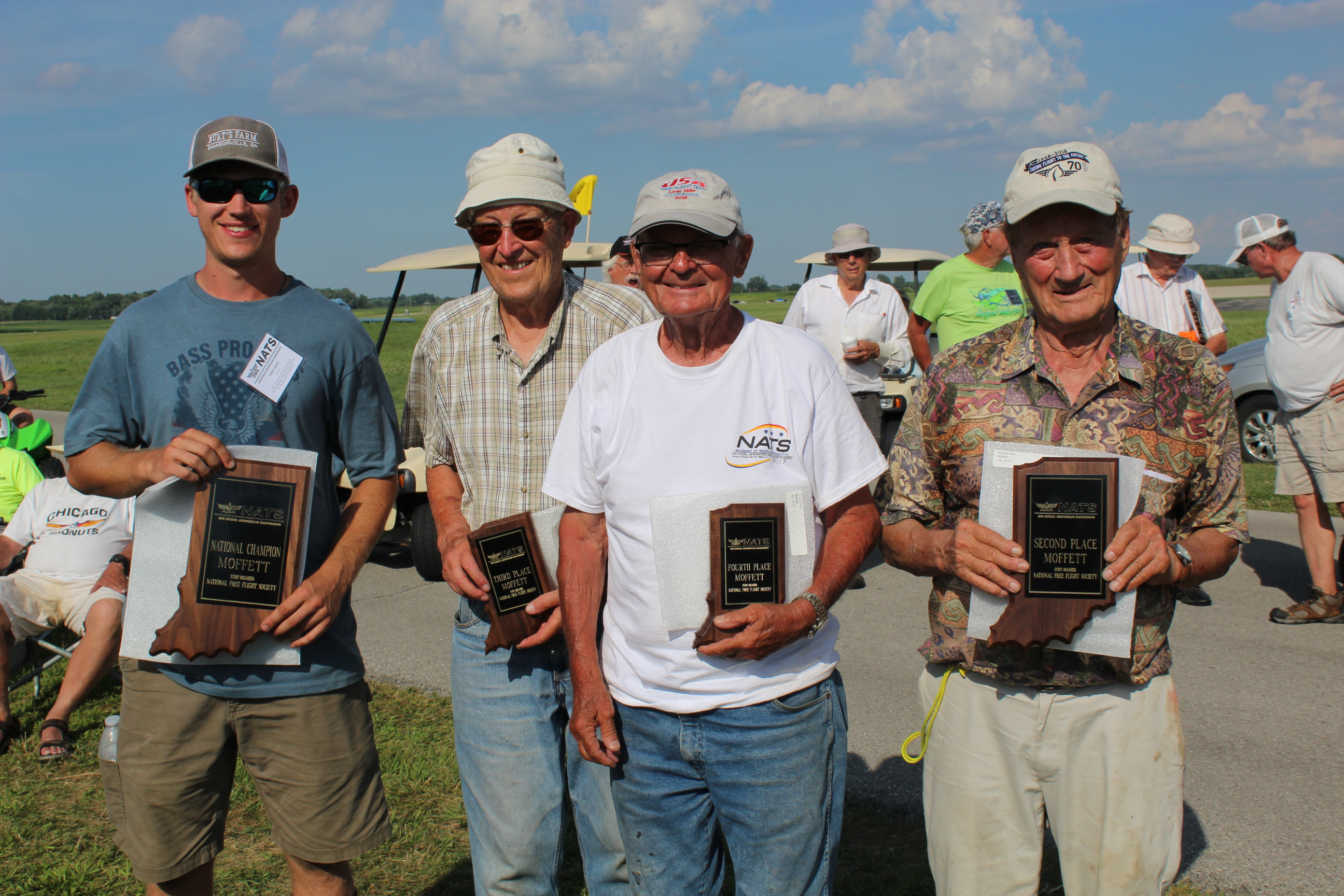 The perennial Moffett fliers are Bud Romak and Herb Kothe. Those two men are usually trading places on the podium, but this year Bob Marier, a senior, blew the socks off all the competition with a score of 1,575! What makes Moffett a challenge is the flight time increases with each consecutive “max” and the max time increase,s and some of those fights can get extremely long. Model retrieval is a big issue, but they keep on flying! Way to go Bob!