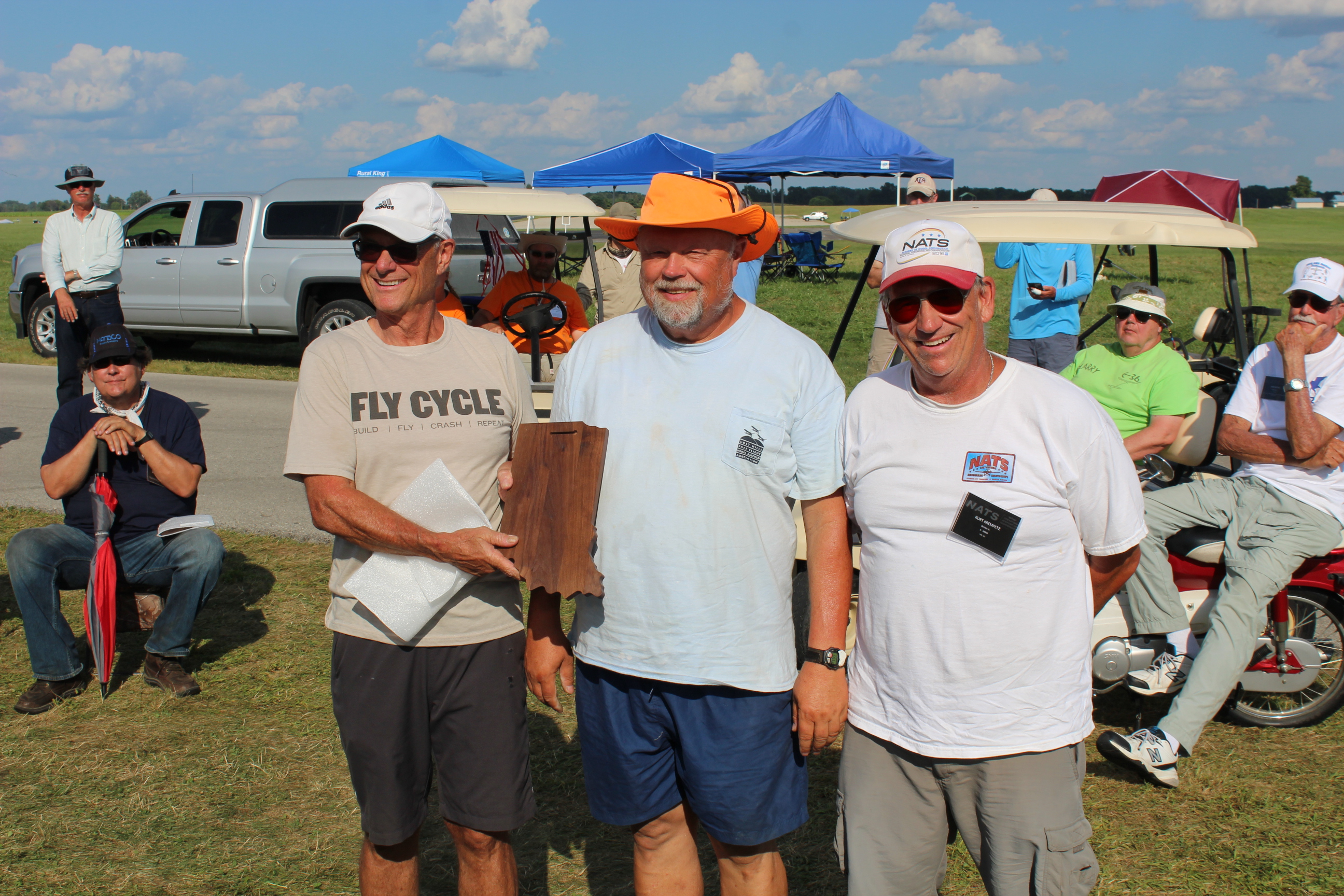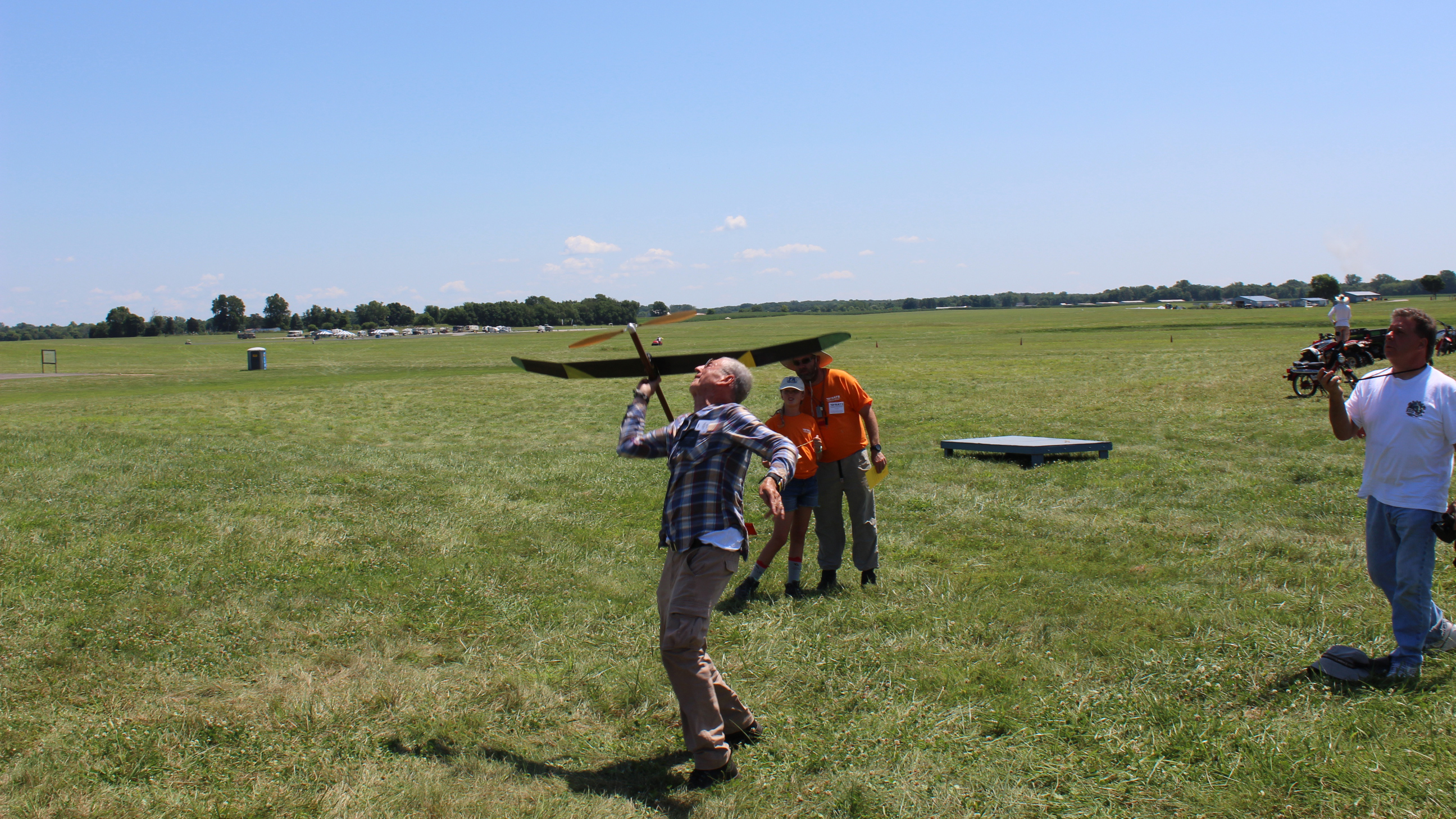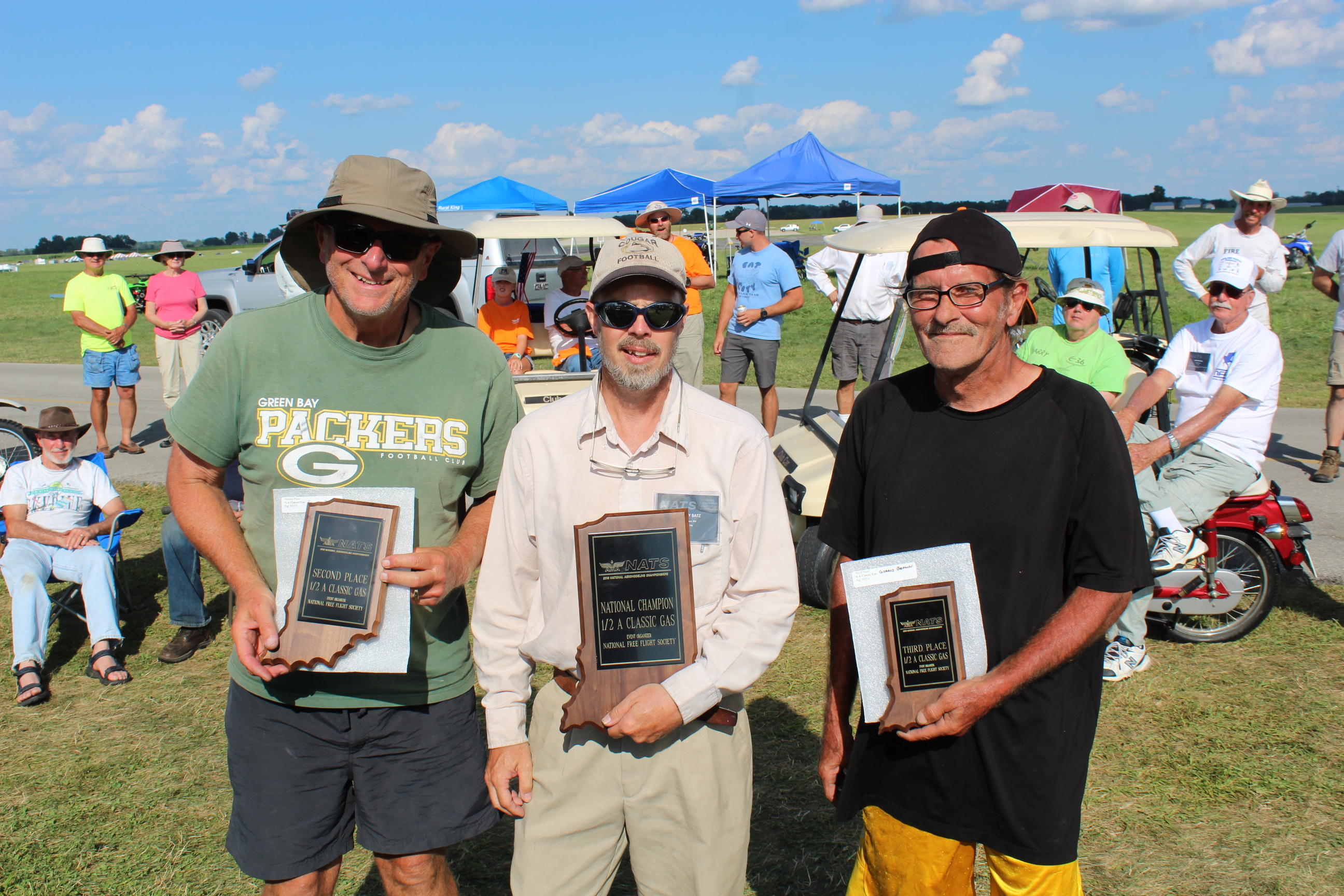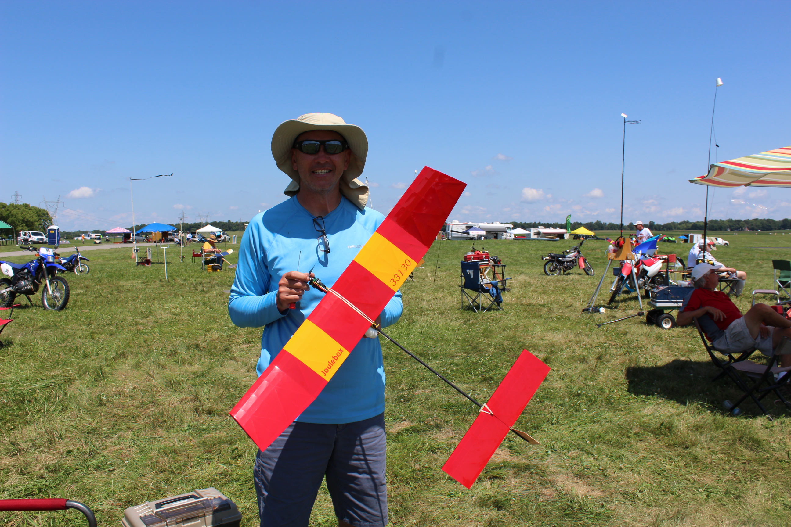 1/2A Classic had 15 adult fliers. Scott Batz from Albuquerque, New Mexico, took the honors with a score of 723, only 34 seconds ahead of second place. You needed five maxes to be in the top three places. That tells you the flying was good and so was the air.