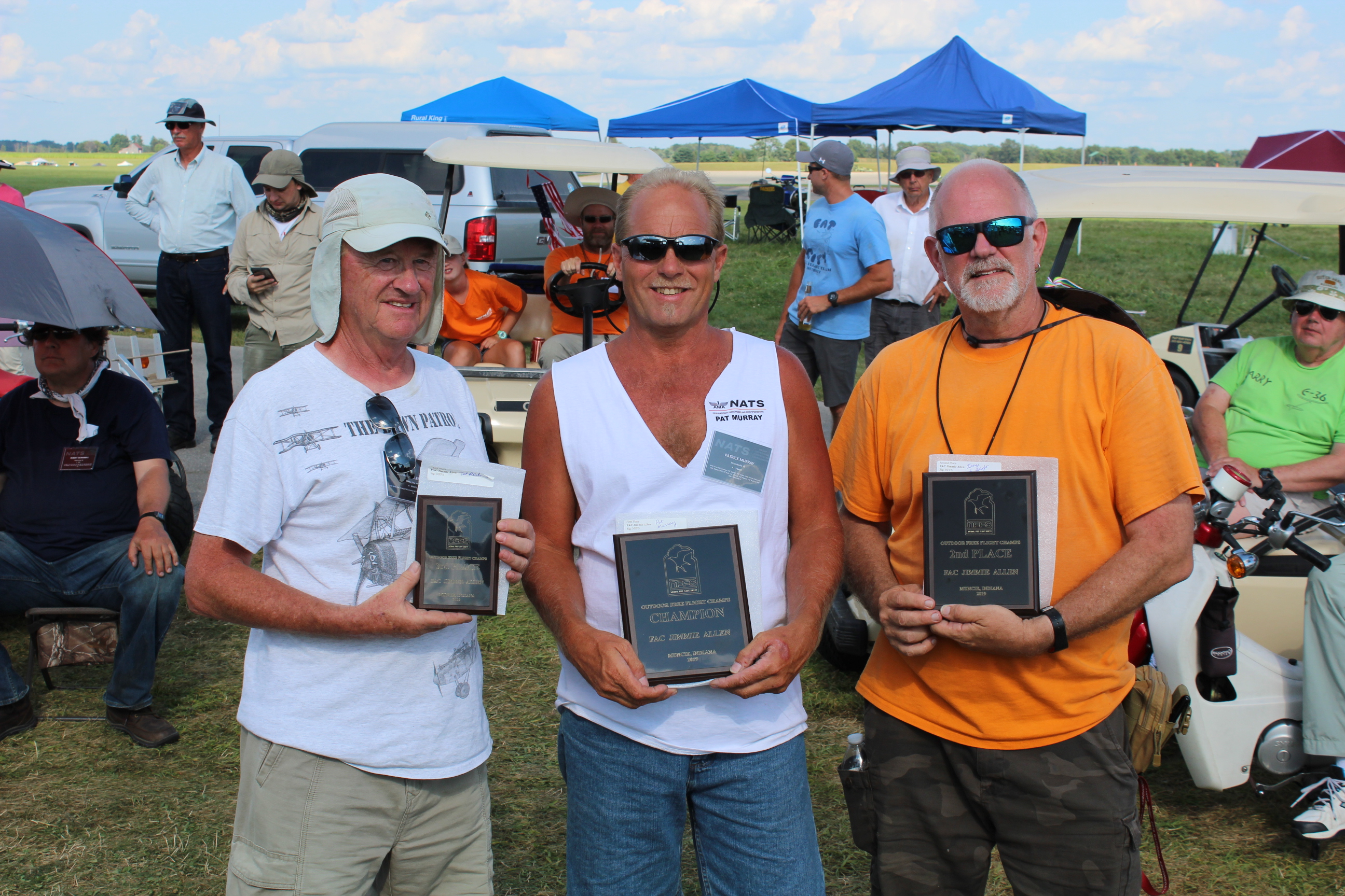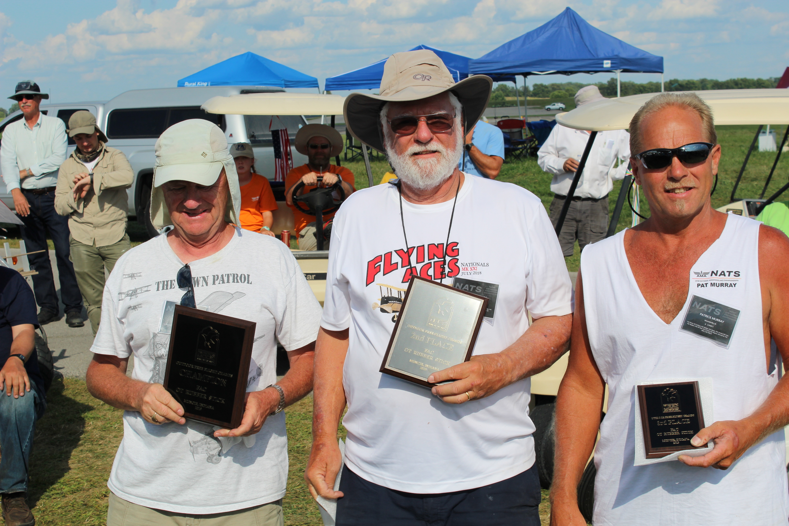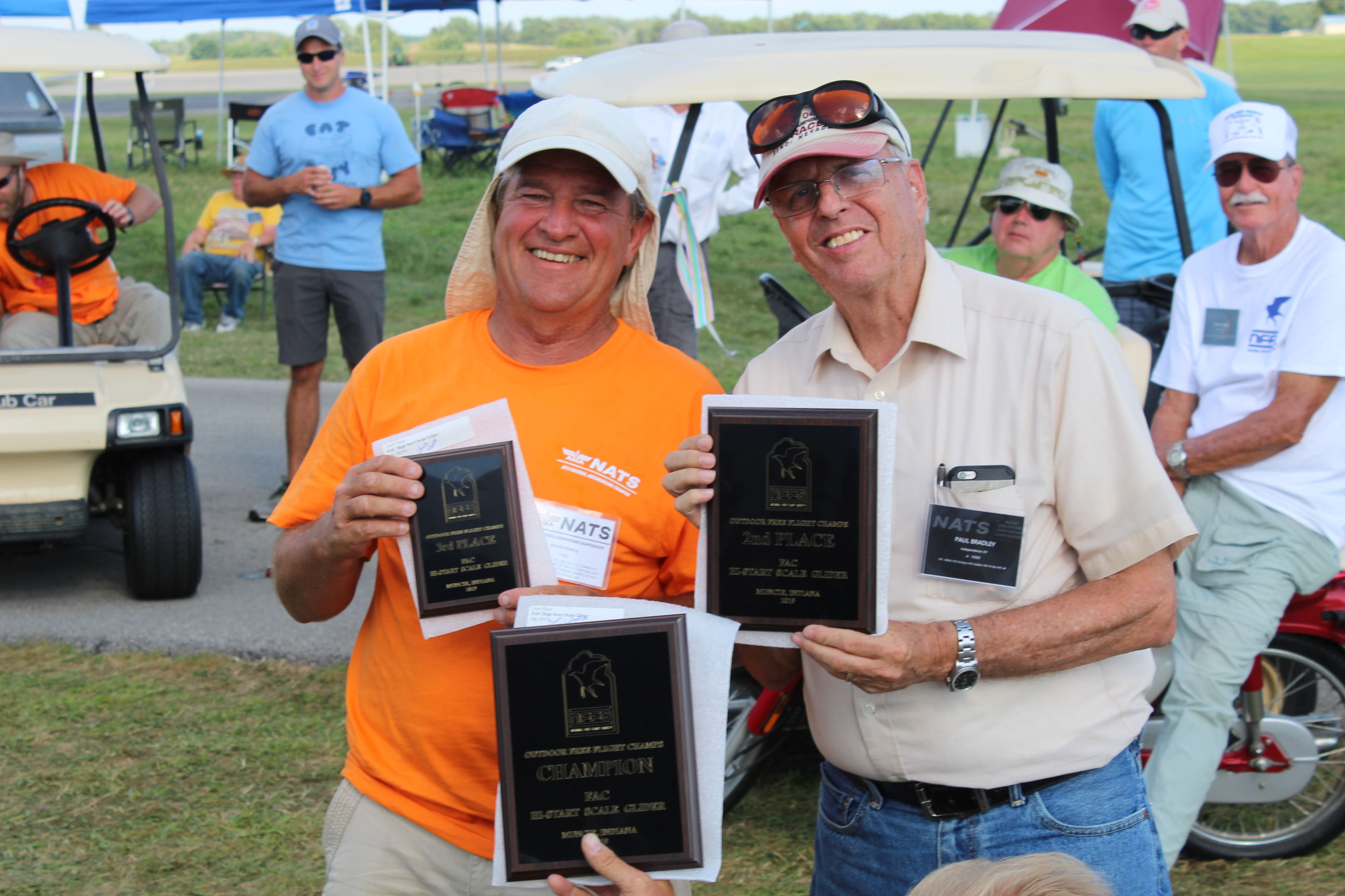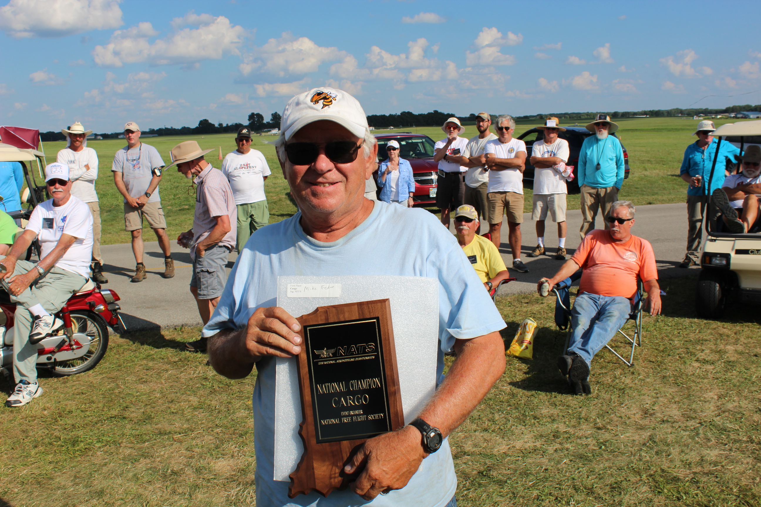 F1B fielded nine fliers. This contest is flown in rounds, seven by the rules at major contests, and maxing out can be a challenge for all seven rounds, especially with the max at 180 seconds. Only four maxed out and flyoffs determined the winner. Greg Simon won with a 1,490, just 26 seconds ahead of Aram Schlosserg who was only 4 seconds ahead of Brian Pacelli, former Junior Team member.