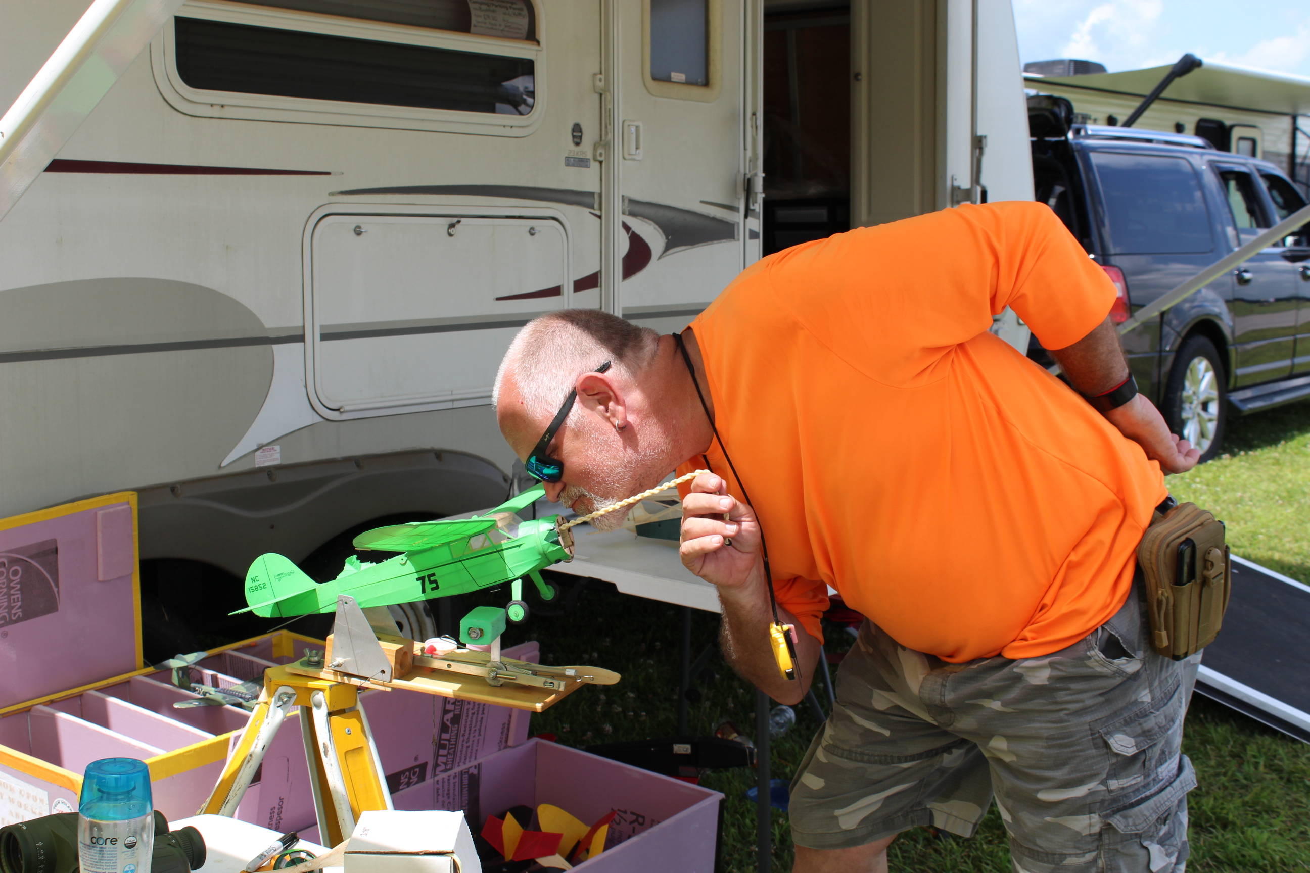 The wind held pretty consistent during the day with a short lull, wind, short lull, etc. The only break is that the wind would either be 10 mph or 20 mph, and that is only an estimate. Later in the day, it did indeed pick up. I ran across Todd Reynolds’ (from Denver) model near the pavilion and his time was about 90 seconds!