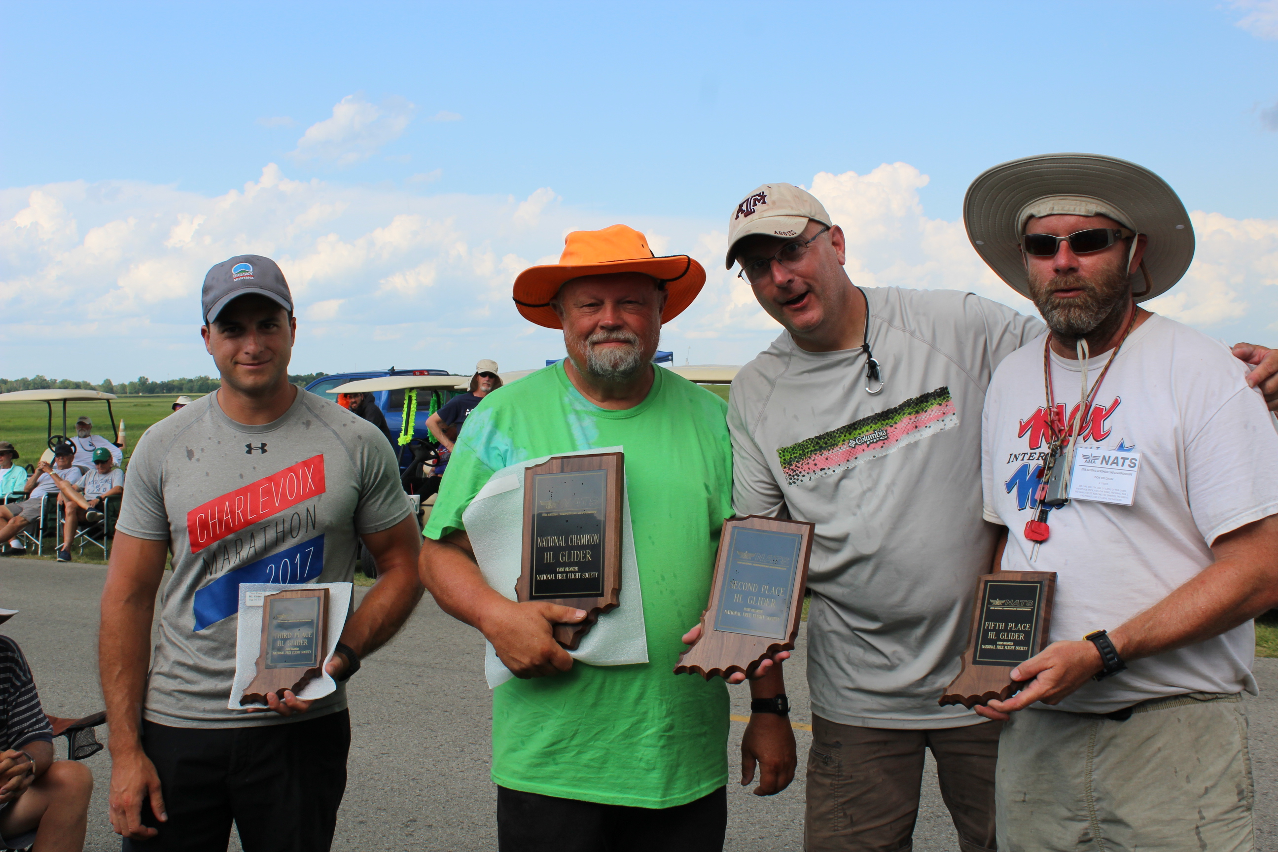 Now for the grunt and groan event, Hand Launch Glider. A total of 15 adults, 2 Seniors, and 4 Juniors competed. Juniors did well with Wes Reuter posting 50 seconds, William Reuter posting 43, Beckham Reuter posting 16 seconds, and Kiley DeLoach posting 15 seconds.