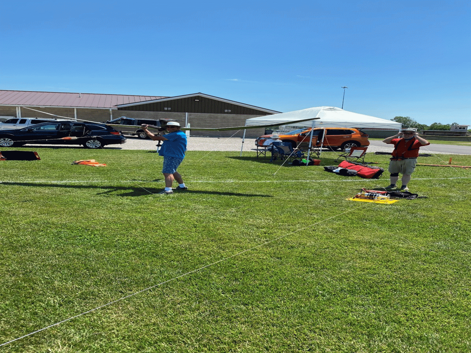 The afternoon, on the other hand, more than made up for the morning. Peeps were out on the course but struggled to get to halfway. John Marien and Ed Dumas, on separate runs, landed with a few feet of each other, both posting 3.4 miles. John on a separate flight chipped in another 1.2 miles. Jeff Carr got up to 300 meters at launch and literally went busting down the course, hit a huge sinkhole, and posted only a mile. Ed Dumas Jr. launched as soon as the chase came back and clocked in a .9-mile effort. Carl Thuesen hung around the school all day and did not get out on the course.