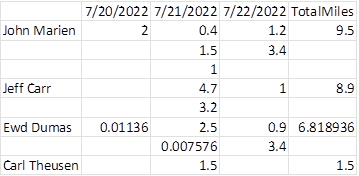 When you cant wait for the chase car to come back you start walking the course. Here Jeff Carr is heading to the end of driveway and then northward. He posted a 1.0 mile effort…walking his first couple hundred feet!