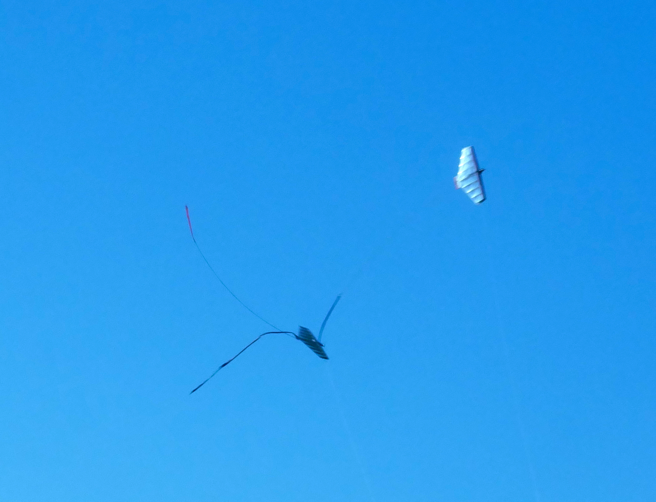 Two unidentified flyers gave spectators a show. Ordinarily these models fly around 100 mph. Some stiff breezes added at least 20 mph to that when they did low, downwind, tight figure eights chasing each other. It is spectacular to watch. Considering all the close-in flying there were surprisingly few midairs, even though there was probably at least one in every match. A lot of times you could hear the airplane whack wings together—often more than once.