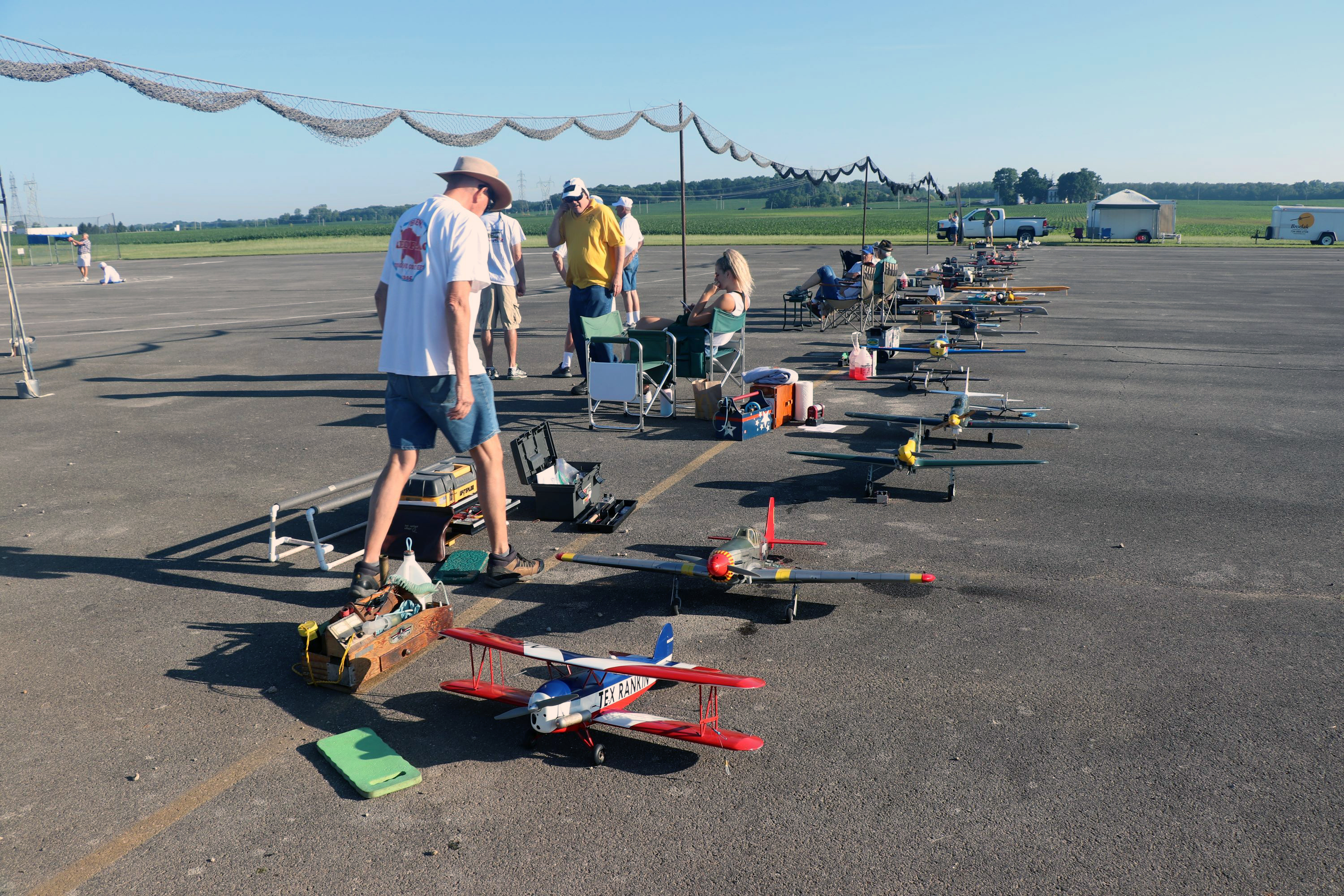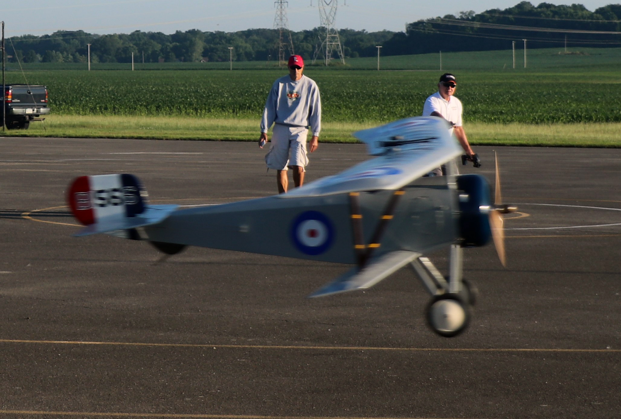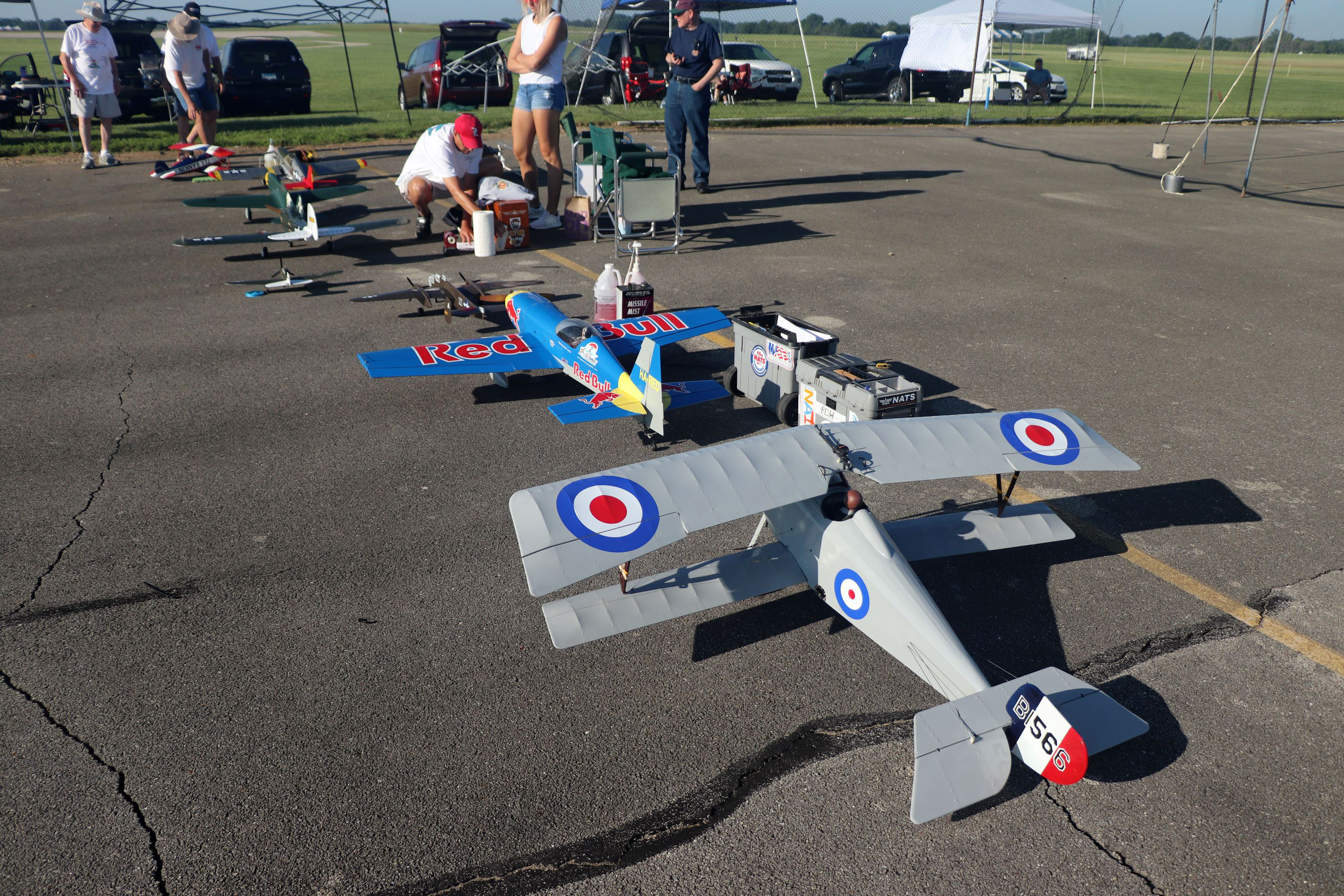 The weather for the first day of flying was about as perfect as we could ask for. The temperature picked up later in the afternoon, but everyone was done flying by 1:30 p.m. before it got any hotter. Allen Goff gave new meaning to the term Dawn Patrol when he was one of the first pilots up with his Neiuport 17 World War I fighter. The flying started at 7 a.m. in both circles.