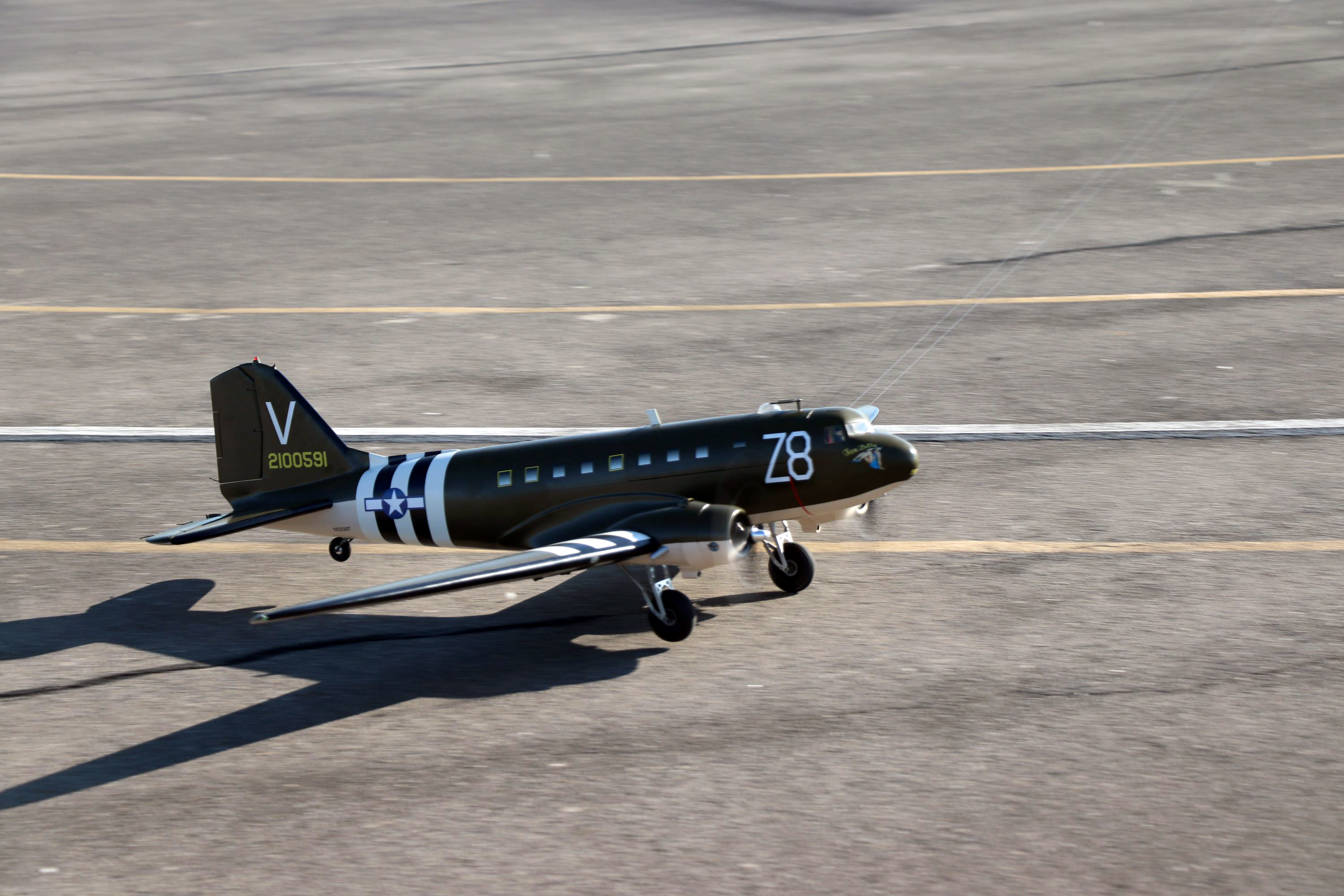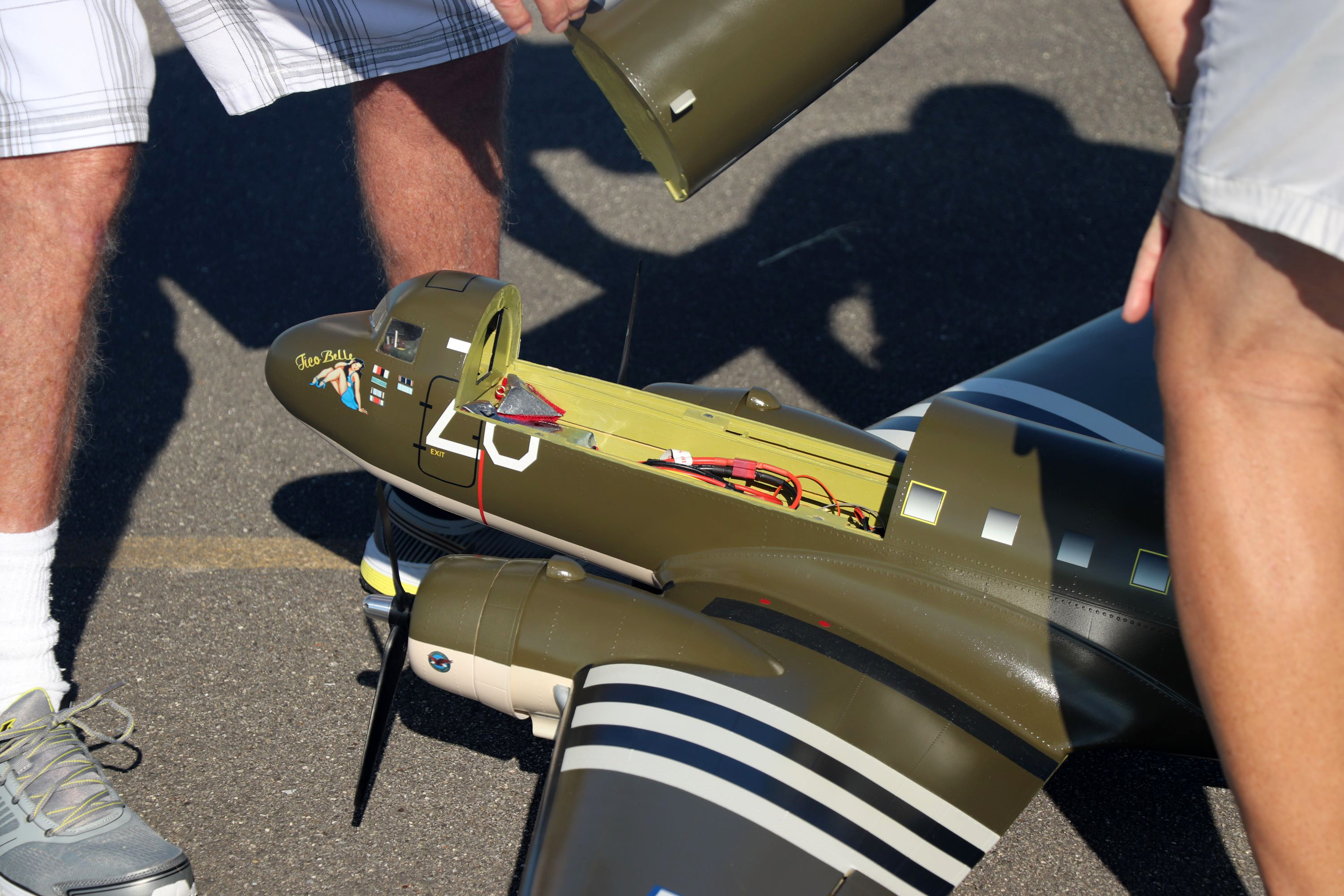 The forward section of the DC-3 fuselage comes off to allow for the batteries to be installed and service the model.