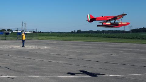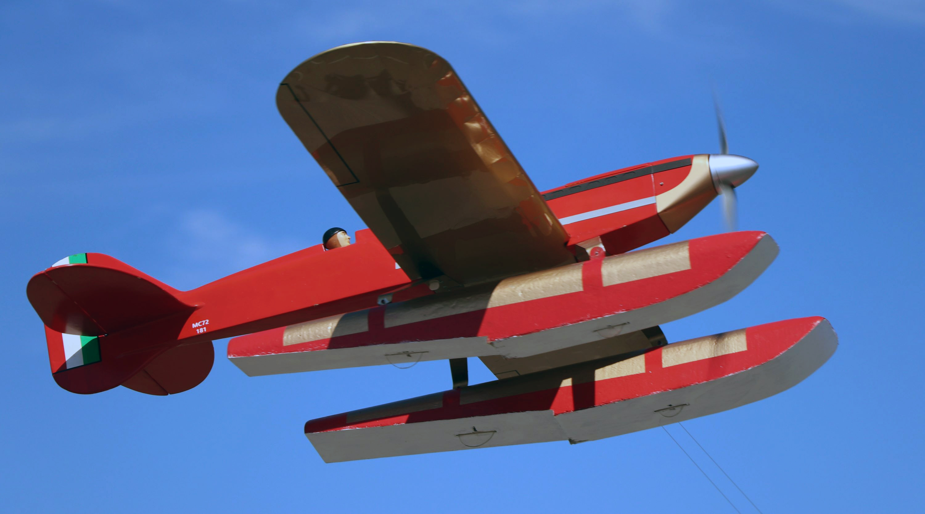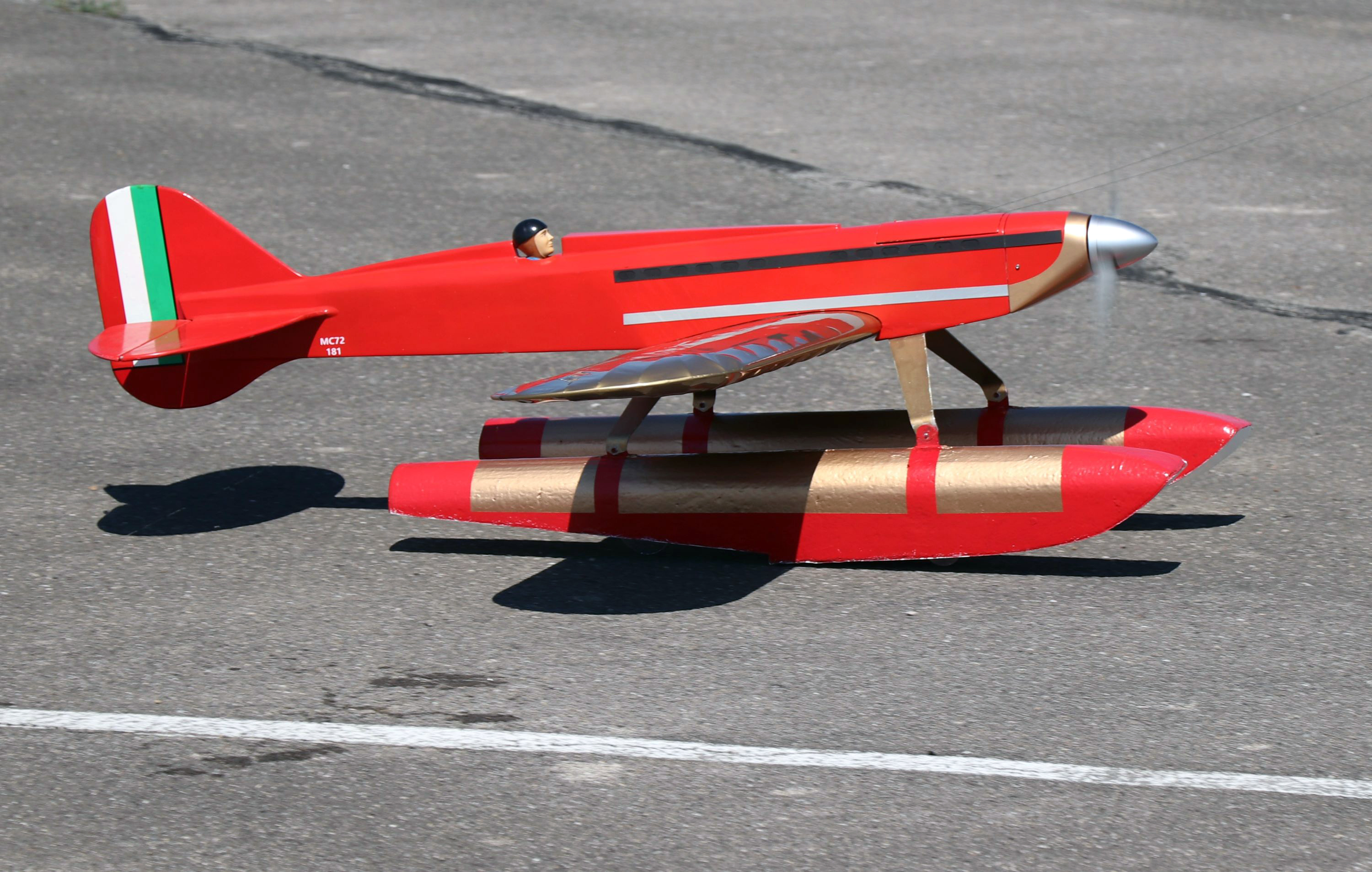 The rules allow for seaplanes to be flown, but the question everyone asked is how do you deal with the fact that the full-scale floats did not have any wheels. The answer is you can add wheels like Grant Hiestand did to his Macchi 72 racer enabling it to land on the concrete surface. The wheels allow take off, touch-and-gos, and landing. The judges are not supposed to take the wheels into account when doing static judging.