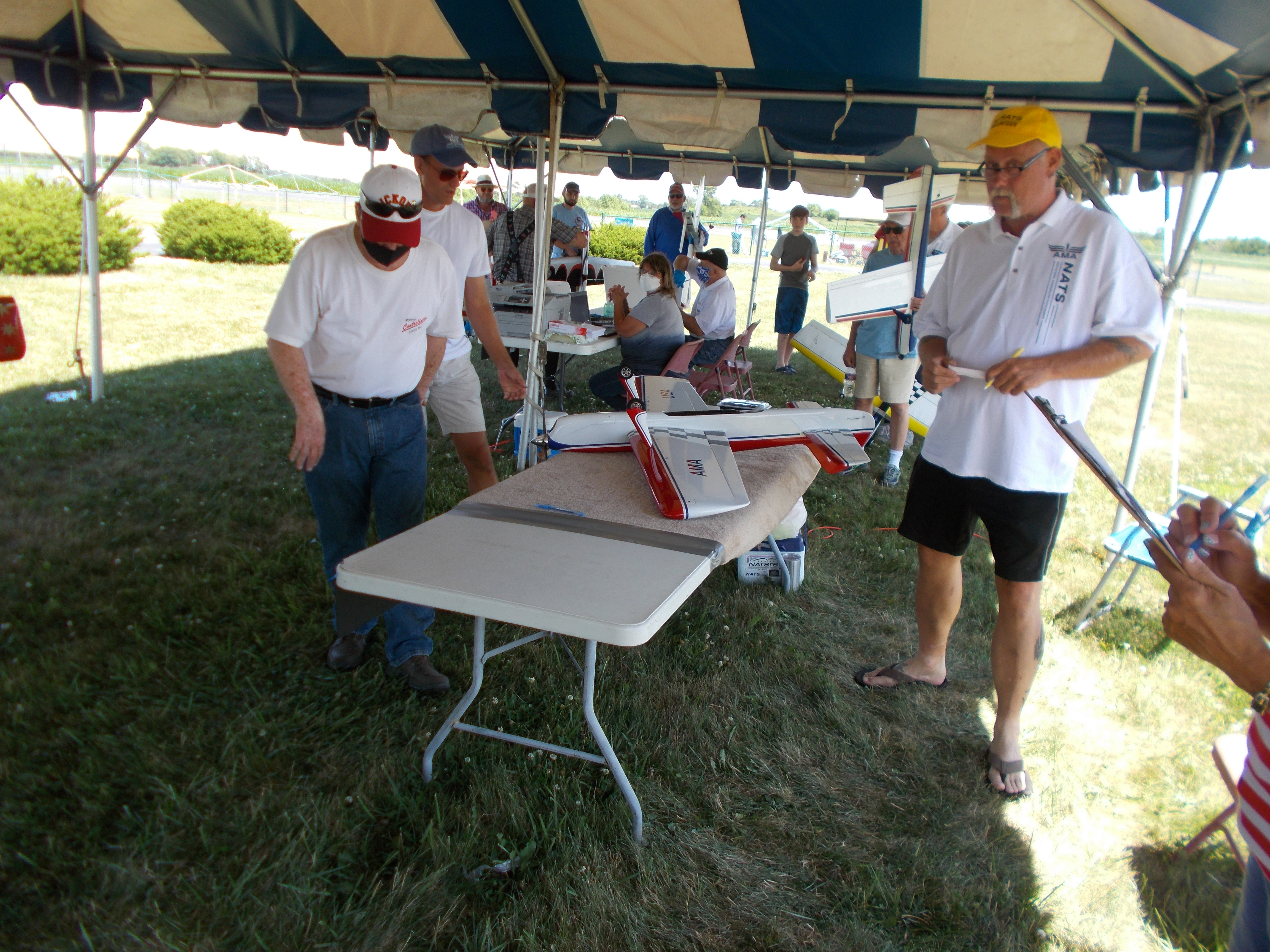By Matt Neumann On Monday, Control Line Aerobatics (Stunt) started off with processing and appearance judging. It is also a time for everyone to get together and start to catch up on things since we last met. For most of us, that was a year ago at the 2019 Nats. I am always amazed at the diverse backgrounds of our pilots. We have engineers, salespersons, mechanics in both cars and aircraft, professional pilots, and many more. Yet there is one thing that always brings us together— the love of model aircraft; Control Line aerobatic aircraft to be exact. Overall, turnout is quite good. We have 54 contestants with 29 in the Open Class, the highest skill class, and 25 in Advanced, which is just below it. This year was a little different for processing. In the past, we have had it in a local gym called the 180 Building. However, with everything going on, it was decided to put up a large tent or, in this case three, right next to each other at the field to hold processing and meetings. Instead of putting the airplanes in the gymnasium, they were put in rows next to the tents. Fortunately, the weather cooperated and there was not a lot of wind or rain, so it was easy to do. In past years, we also handed over our airplanes and someone else took them into the gym; we never got to see the lineup until after everything was done. This time we signed in, weighed the planes, and then took them to a table with a soft cloth over it. We set the planes on the soft cloth for the judges to examine. They not only got a good look at the top, but also the bottom. Once they were done, the judges assigned a value between 1 and 20 points. These points would then be added to your score later in the week. The judges were really sharp this as as we did not have any “perfect” 20 point planes. We only had two nineteen points which were awarded to Paul Walker and Steve Millets plane. These two flyers had the honor of being the only ones in the front row. Behind them we only had three 18 point planes. You really had to earn you points. The rest of us were split up from 12 to 17 points. After we got through with the processing, Dave Trible, who is running the show, did the pilots’ meeting. Normally we have had some electronics with a projection screen to put on a nice presentation so everyone could easily hear. This time, we did things the old-fashioned way—a portable blowhorn. After his information, he turned it over to Wes Eakin who is stepping in for Mark Overmeir this year as head judge. I understand it was a bit of a revolving door for volunteers this year. Many who thought they could make it, found out they couldn’t, so someone else had to be found. Fortunately, Dave and his crew found replacements, some of which were at the last minute. To Dave and the rest of the volunteers, and I am sure I can speak for the rest of the contestants, thank you! Once Wes was finished with his presentation, we were free to get our models and wait to see who won the coveted Concours Award. This is an award that the pilots vote on to see who get Pilots’ Choice for the best-looking airplane. This year it went to Steve Millet with his 19-point plane. Well done Steve! The rest of the day was spent catching up with old friends and doing some practice flying. I personally got three flights in after the meetings and am now charging batteries and resting for Tuesday’s practice sessions. Since this is a weeklong contest, it is considered a marathon and not a sprint. You have to pace yourself so you can peak when you need it. It is certainly going to be interesting to see how this contest unfolds. There is a lot of talent on the field. You really need to be at your best if you want to place well. So, the heat is going to be turned up in more ways than one as the week goes on. Stay tuned!