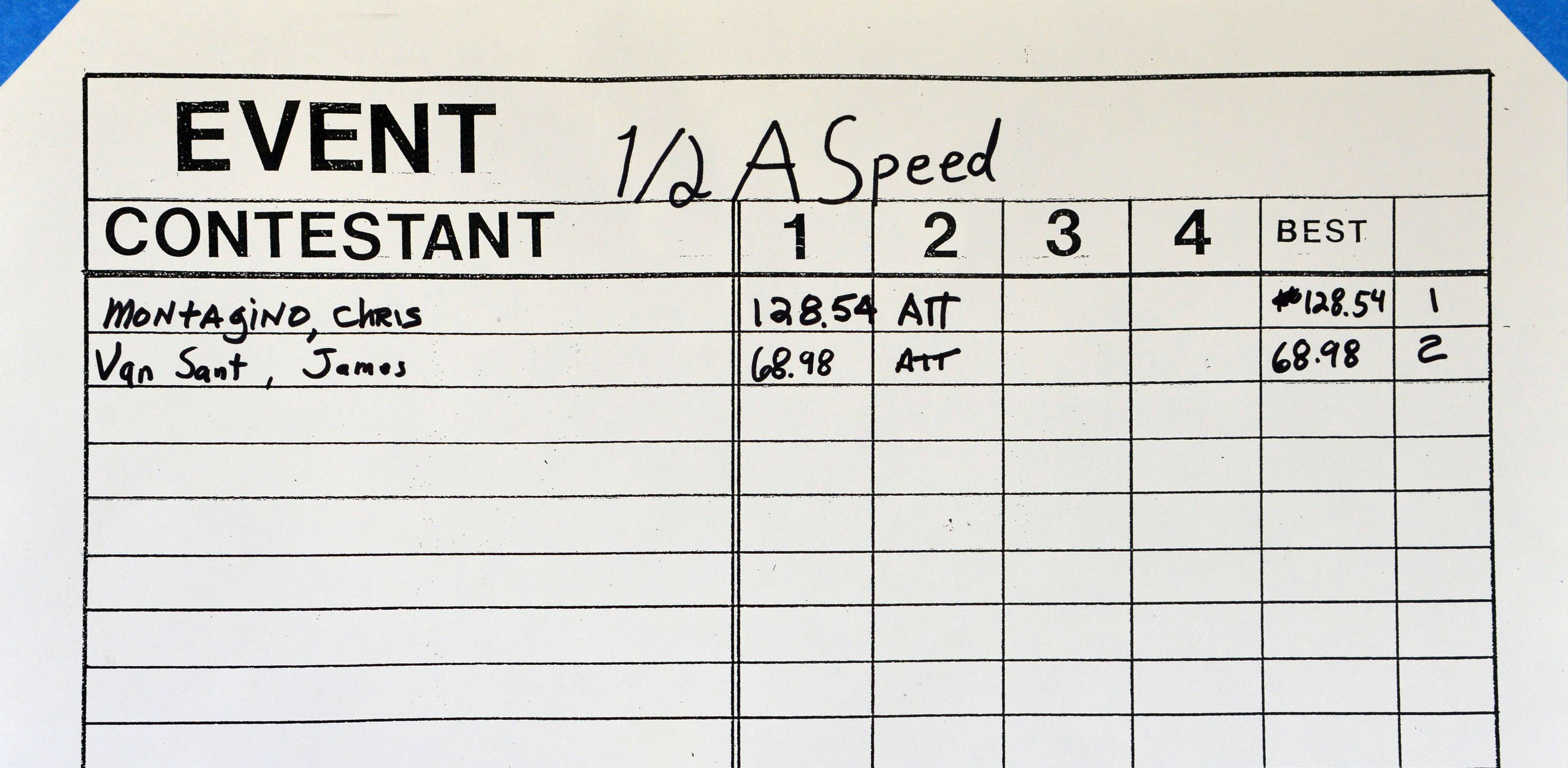 1st Place in 1/2A Speed, Chris Montagino, National Champion 2020