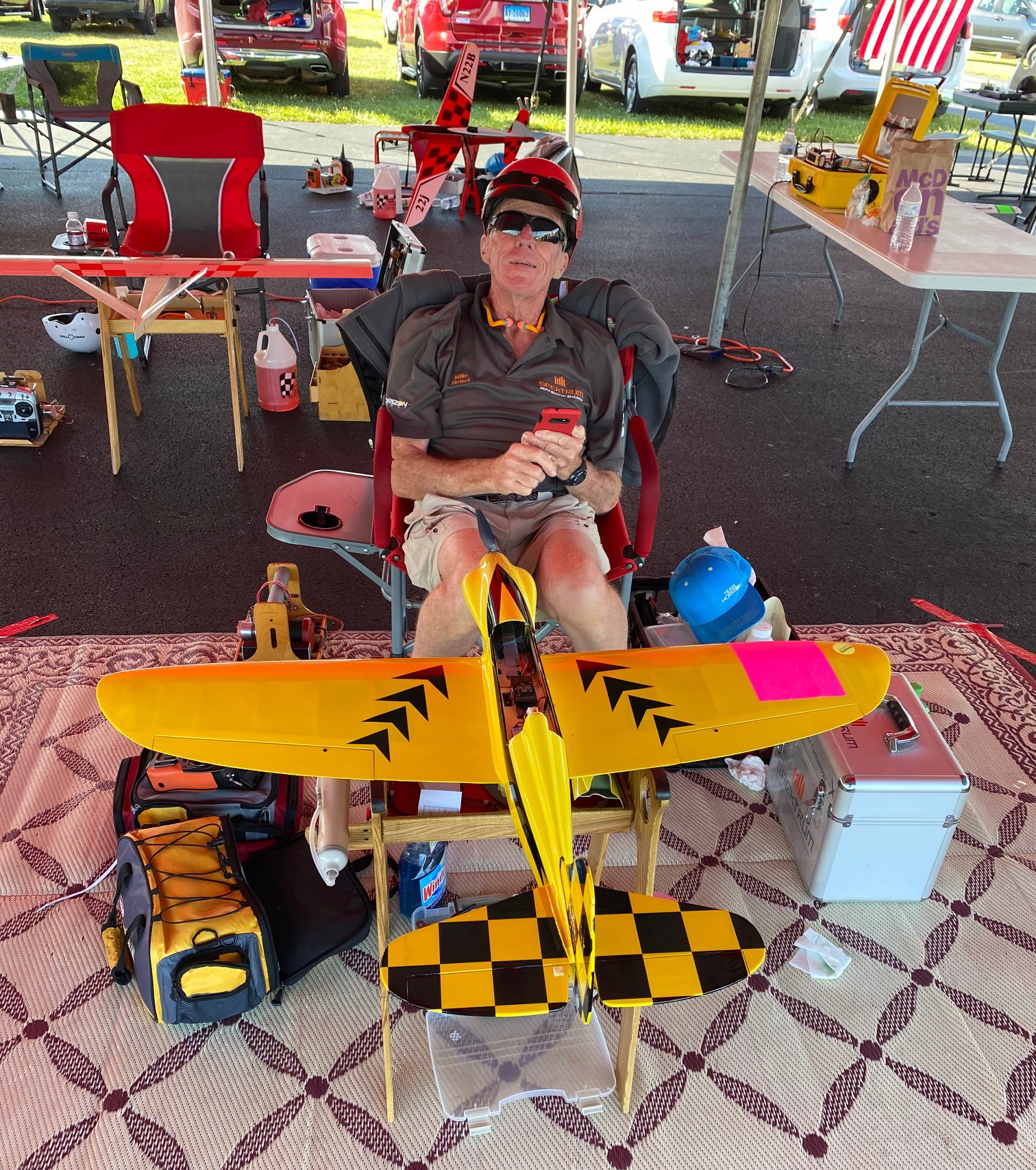 Monday was the electric EF1 class. There were 29 entries and most everyone had fast airplanes and great thumbs. This class is “box stock,” meaning all items are available to anyone and cannot be modified in any way. This makes the class very fun and easy for everyone. Ray Brown and Lloyd Burnham were the starters for this event; thank you both for a great job. There were a lot of great heats and tight racing. It was good to see some of the newer guys kicking some butt. You can tell they have been practicing.