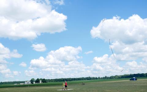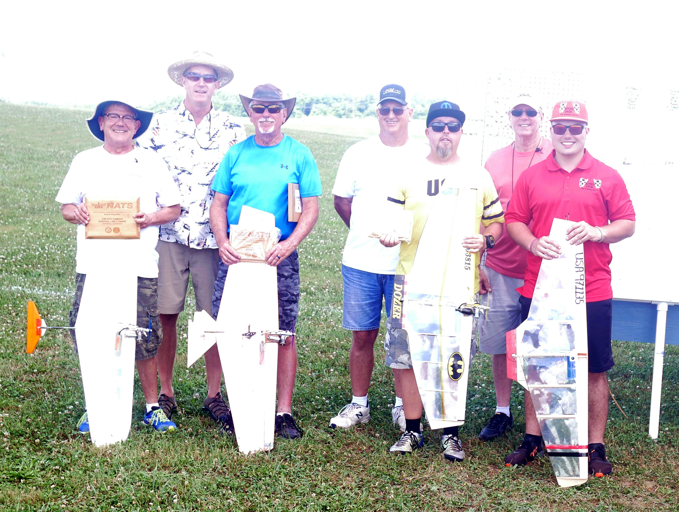 Ed Bryzs had another version of his big, rectangular foam wing. Several people flew variations of foam wings with about the same wing area, but a longer span that helps reduce drag. All the others were variation of the now standard F2D plane—a very strong foam/wood/paper leading edge, a now standard center rib, and either a type of elliptical trailing edge of carbon fiber or a straight trailing edge. The elevator is mounted on a short extension from the wing. The only big difference between the variations is who built them, what materials they used, and how long they will take to get here.
