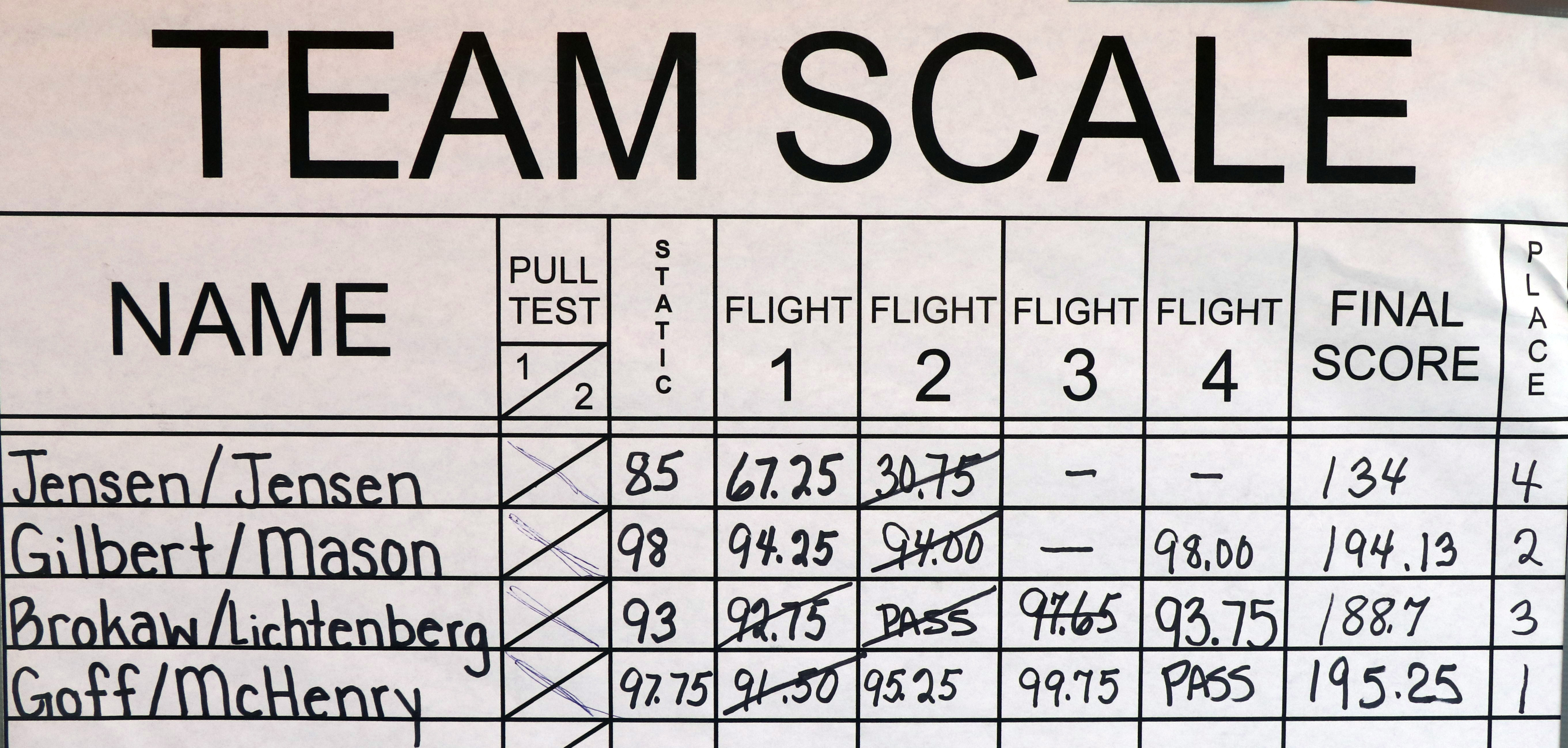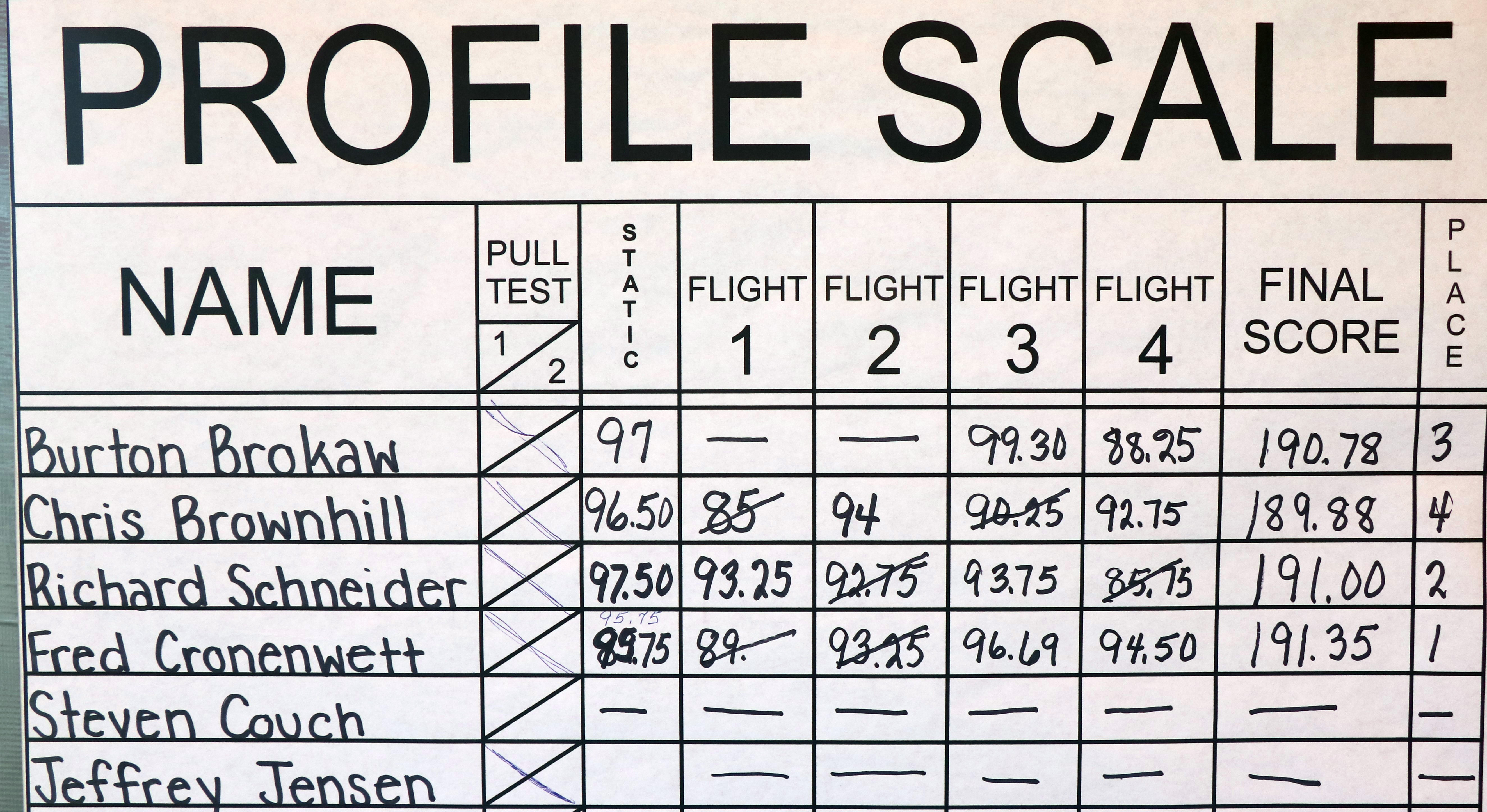After all of the flights were flown, with the two best flight scores being averaged, there was 1.47 points difference between first and fourth place. Richard Schnieder got the Top Static Award for his Cassutt racing plane. There were only 1.75 points between first and fourth places with the static points.