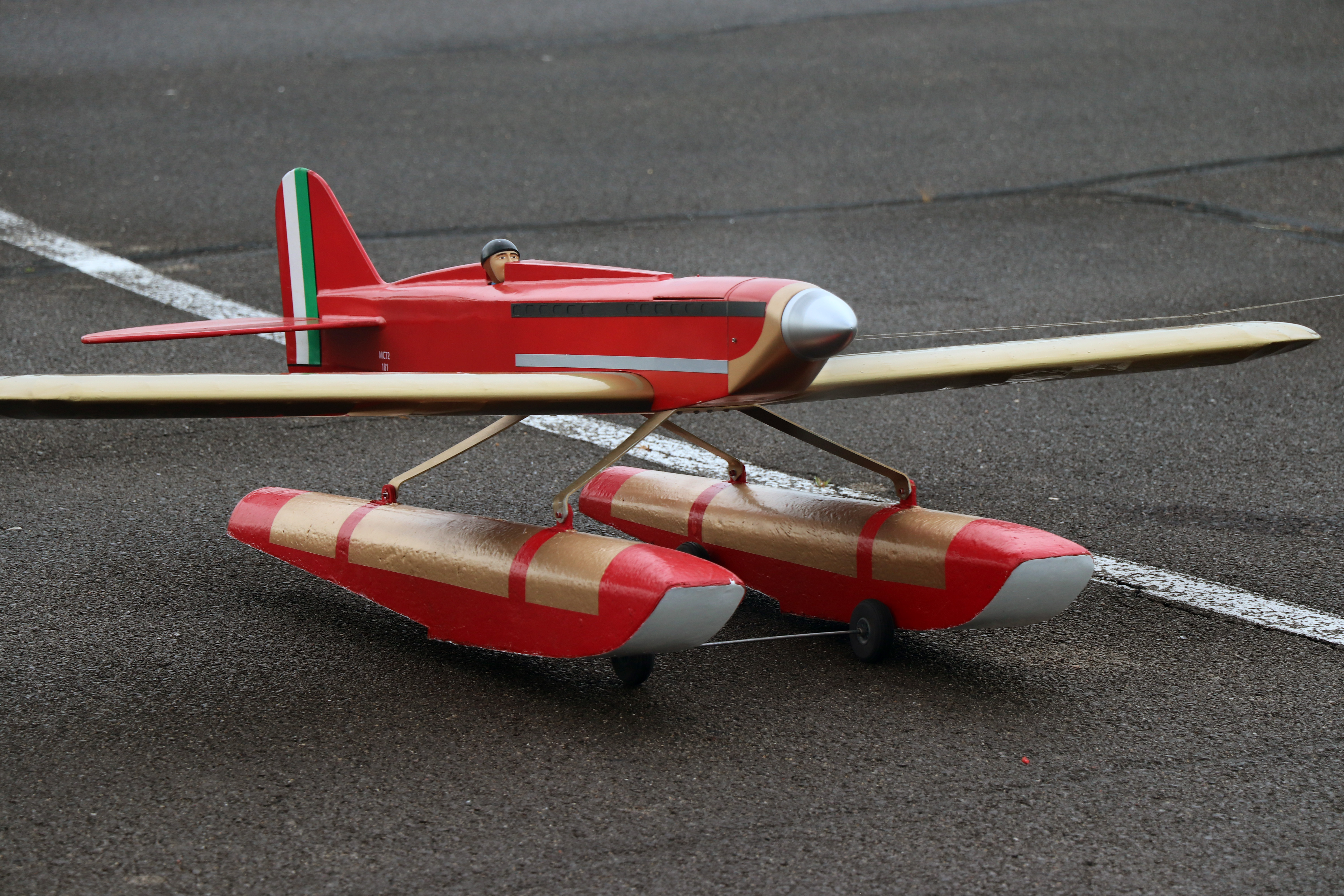 Fun Scale continues to be a competitive event. Grant came back with his Macchi floatplane with the wheels repaired from Saturday. Two of the wheels broke during the second flight on Saturday, and they were replaced with foam wheels that are now located between the floats. The wheels are only visible if you look from the front, but not from the outboard side of the floats. So if you want to build a seaplane, you can add Pylon racing wheels in the floats or similar wheels. It makes for a unique and different scale project.