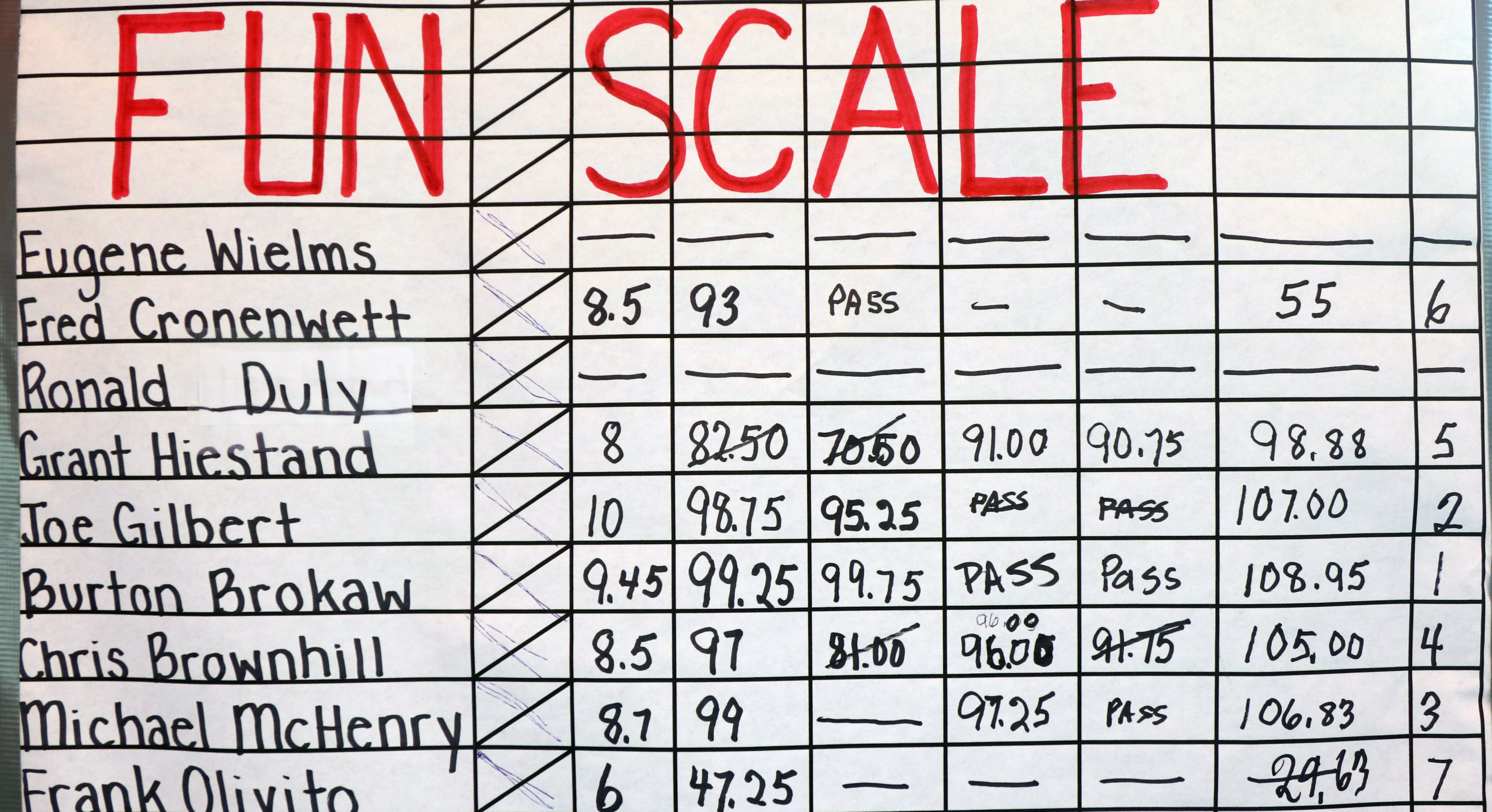 Burt Brokaw flew his P-51 with mechanical retracts to another first-place finish, with Joe Gilbert in second place, and Mike McHenry in third place. The point spread in Fun Scale was wider than in Profile Scale and had seven entries.