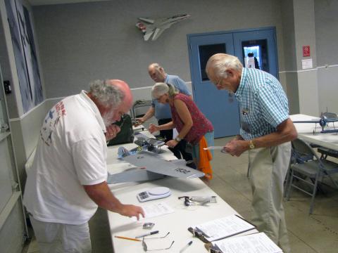 Although there are stormy seas forecast for most of the week, that didn’t dampen the spirits on Monday as the CL Navy Carrier contestants gathered to process their aircraft for the week’s competition. Some of the regulars are sitting it out this year because of conflicts and injuries, but there are a few new faces and some returning veterans from previous years to fill the ranks. There were also some new aircraft this year, and the percentage of MO-1 models is down with the variety of alternative aircraft, especially in Profile, that were processed this year.