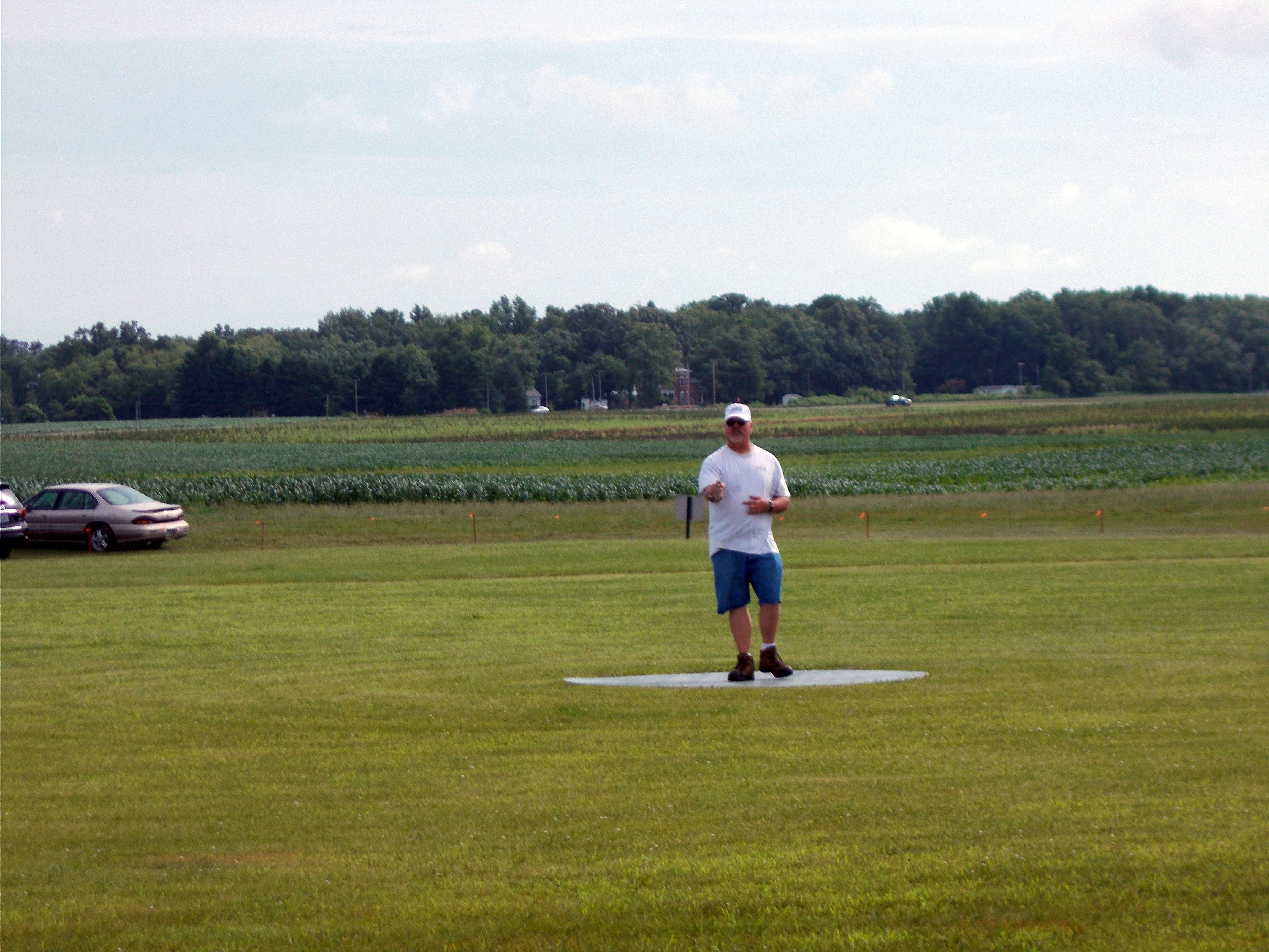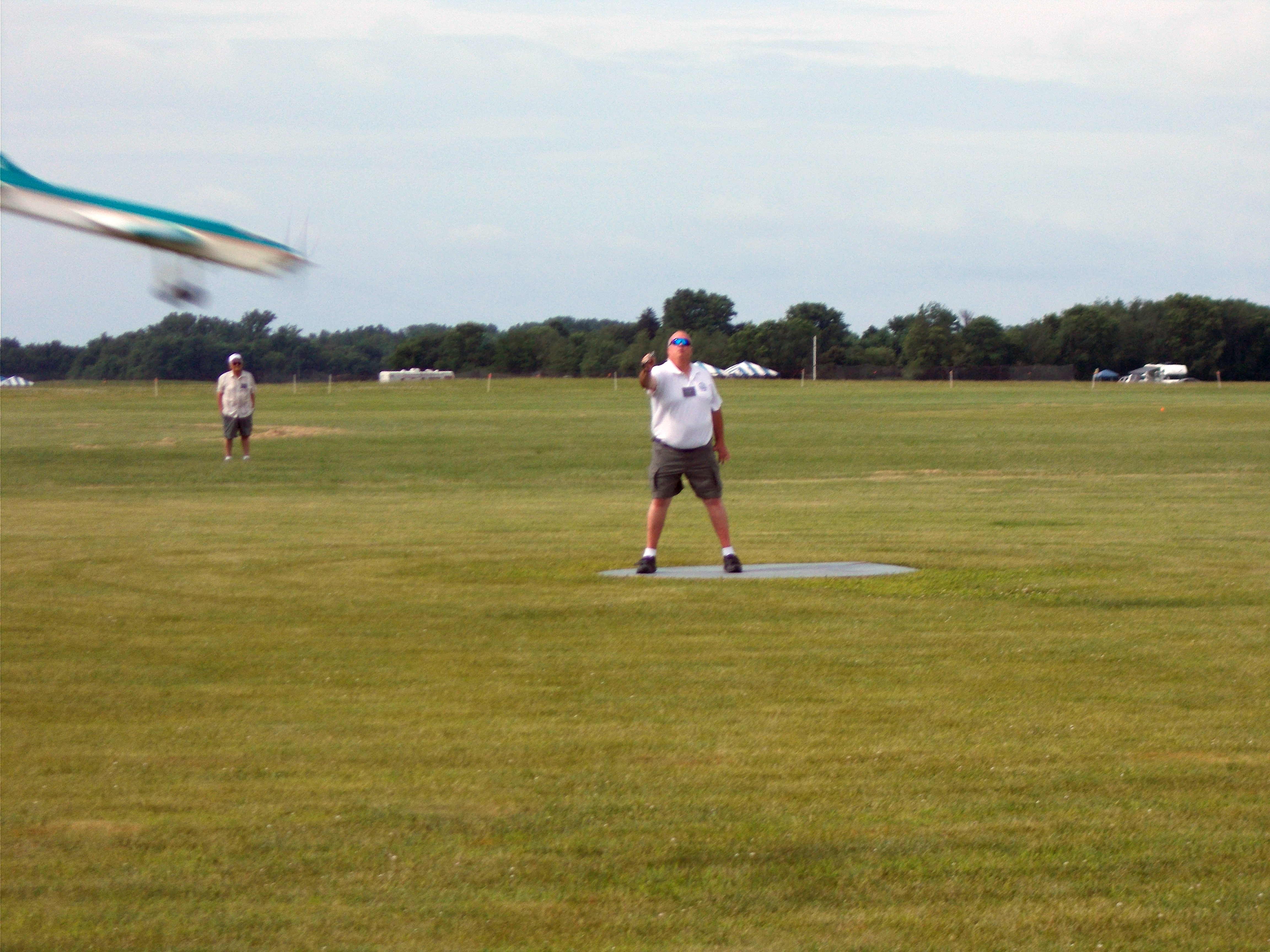 The contestants were greeted with light wind and a cloudy sky. We actually had a small rain shower go through just after 7 a.m. Nothing much—just enough to make people scramble for cover because it looked like it could become much worse. A couple of us got caught in the rain shower while we were flying. I was one of them. Fortunately, I was at the very end of my flight, so I did not have to wait much before being able to land and then get my plane in shelter (the car).