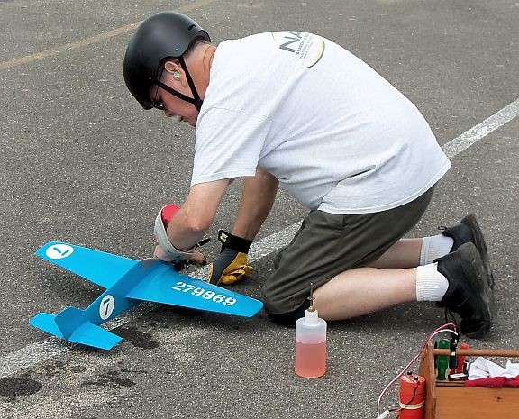 The engine size reduction has not really helped much, and suitable engines are becoming scarcer. The powerful .25 RC car conversion motors in practice are also heavy and just about as fast as many .36s. As a result, entries have suffered. Two GO .25s, an XTM .25, and one Thunder Tiger .25 were used by racers.