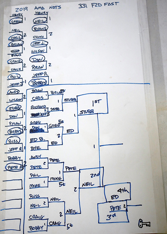 The contest used the simplified match with a qualifying round. The winners went to the main bracket. The losers got their own round to qualify. The winners also went to the single-elimination main bracket. The CD, Dave Edwards took a lot of care that flights between people from the same part of the country were kept apart as much as possible—also separating any rematches between opponents in the first round and the losers’ round. It takes a little brain power but completely does away with any possibility of favoritism.