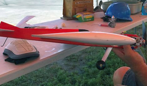 Super Slow Rat was sponsored this year by Pat King of PDK LLC, who kits many outstanding designs. Super slow Rat rules call for plain bearing .25 size stock, unmodified engines. The motor of choice has become the Brodak .25 which is currently manufactured, and of outstanding quality. These motors perform very well right out of the box. Bill Bischoff debuted his second generation “Mockingbird” design with new super secret airfoil. This is kitted by Pat King. David Betz entered an original, fabric covered design which did well.