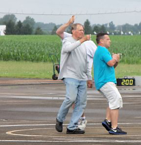 Races were run 3 up with close times. With all equipment being closely matched in speed, it makes for some intense flying. The center of the circle can be a rugged place to be! Chuck (Upchuck!) Barnes ran into a stray elbow which caused him to loose sight of his plane for about 3 laps before suffering a bad fall; luckily he was ok. Stone/Oge and Oge//Stone made the finals forcing a ‘Rent-a-pilot situation.. Chuck Barnes & Mike Greb graciously stepped up to make it a 3-up race as it should be. Results are posted.