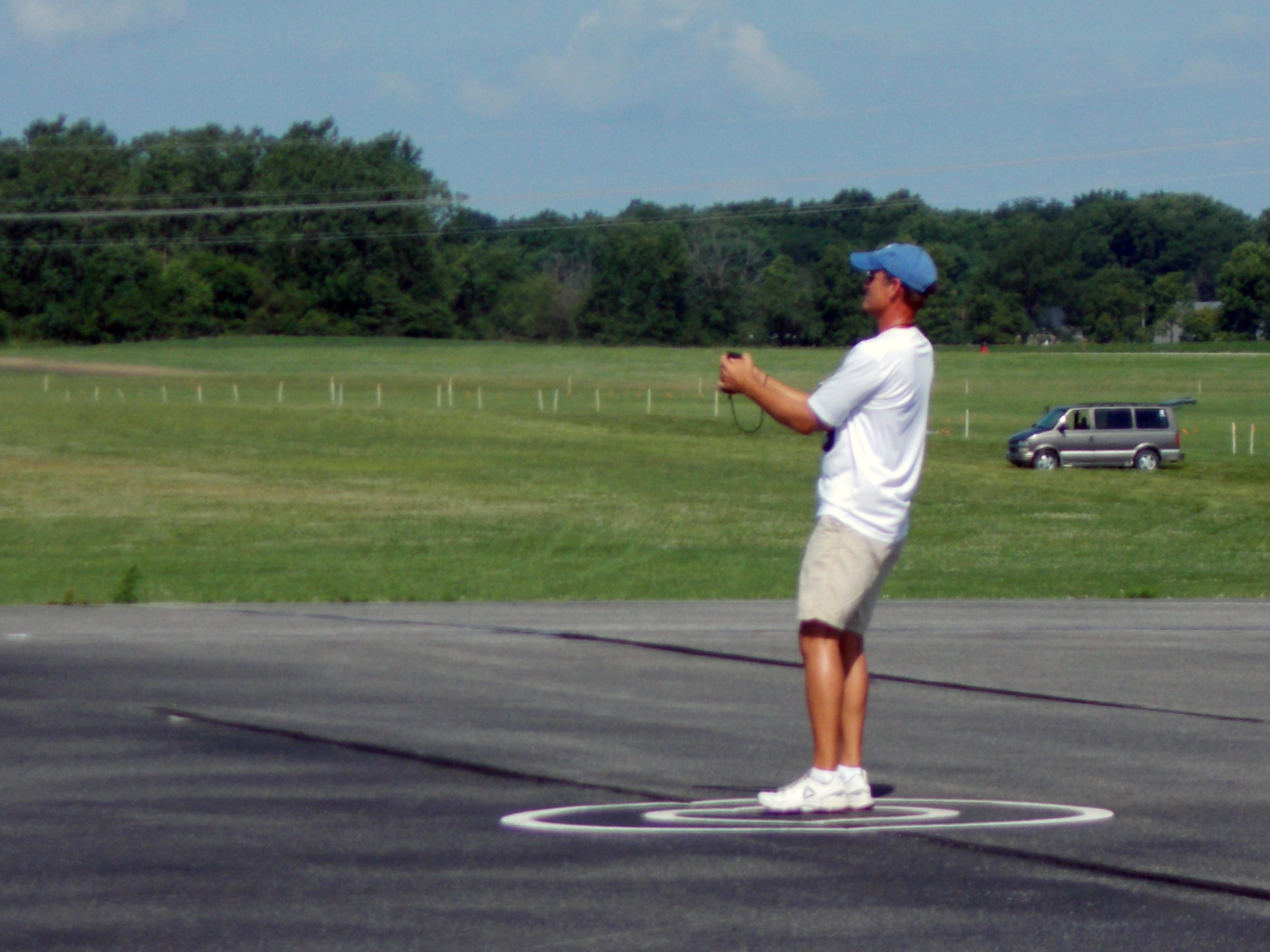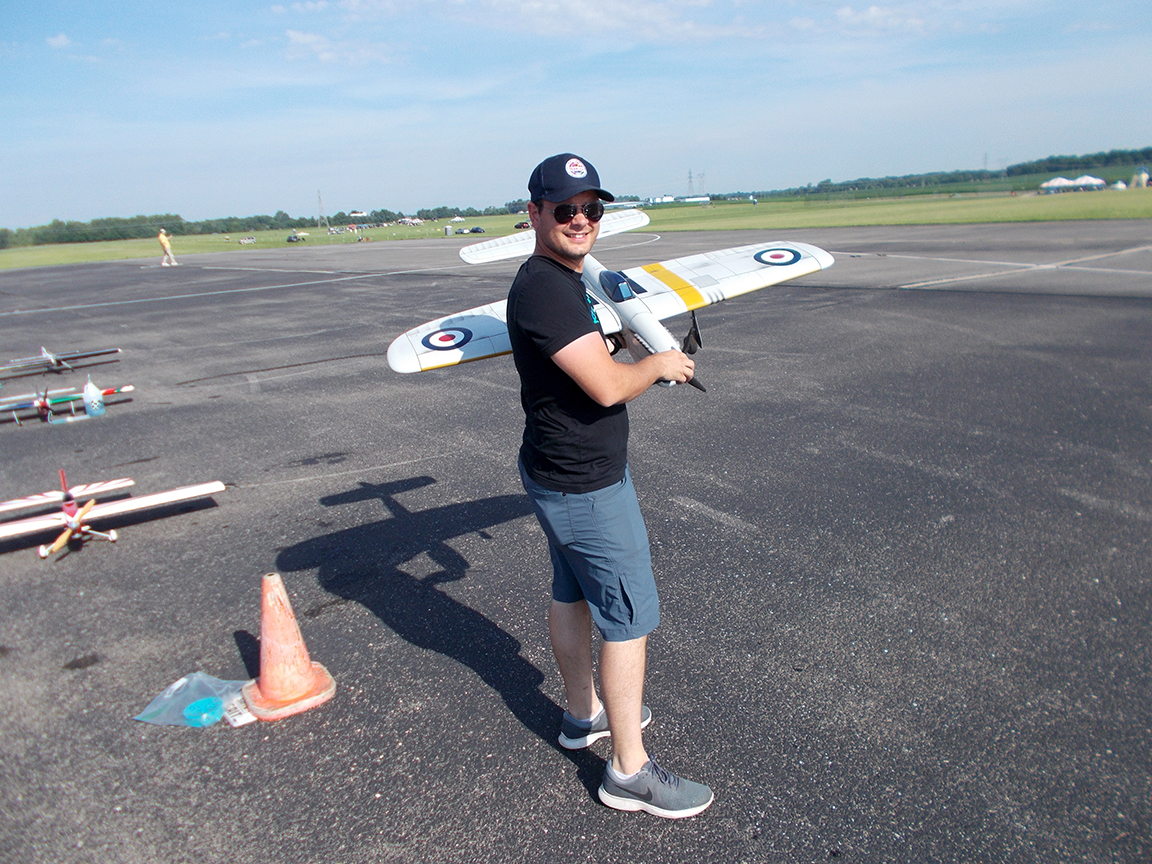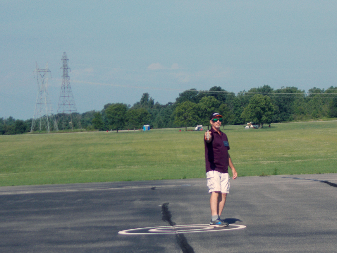 Remember I mentioned that he crashed it about two weeks before the Nats and was able to put it all back together again just before the Nats? Well, thankfully, this time he was able to recover his plane before disaster struck. He mentioned that his airplane was on its fourth life because he almost had a disastrous mishap with it Wednesday due to an electrical issue. Thursday was a mechanical issue. He was able to fix the problem and put up a really nice flight after the rain delay.