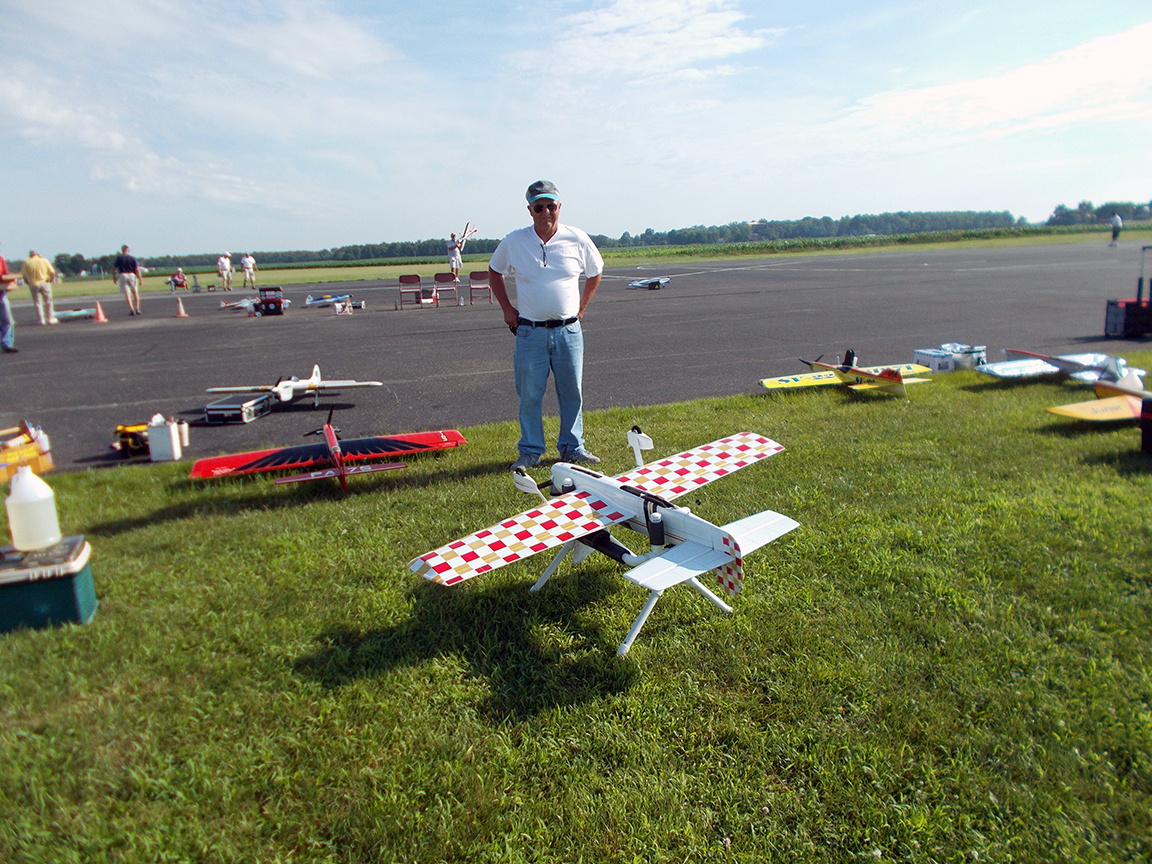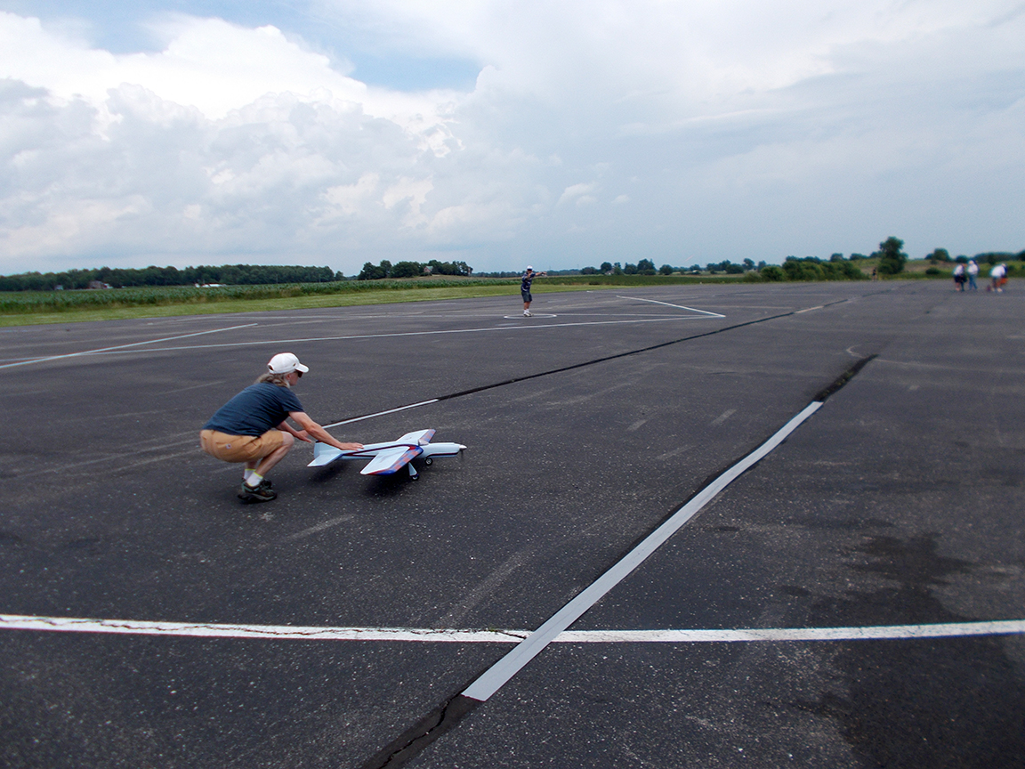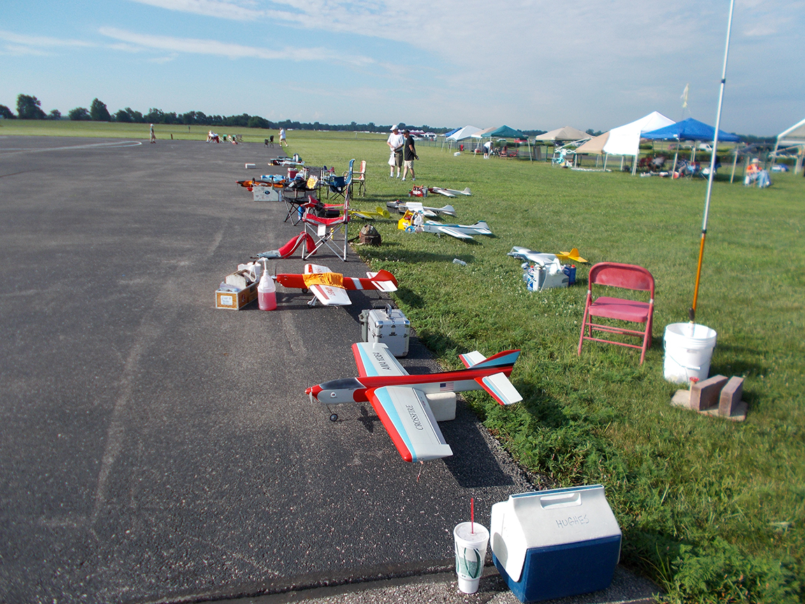 However, shortly after my second flight, we were noticing that the clouds were getting darker in the west. Then we noticed what looked like some rain forming in a small spot. However, that small spot grew and grew and grew. It got so big that Mark Weiss got a message from AMA Headquarters warning about the impending rain. Mark then shut down the flying and told everyone “to head for the hills.” This was the signal for everyone to get their gear under cover in a hurry. Most were able to do so.