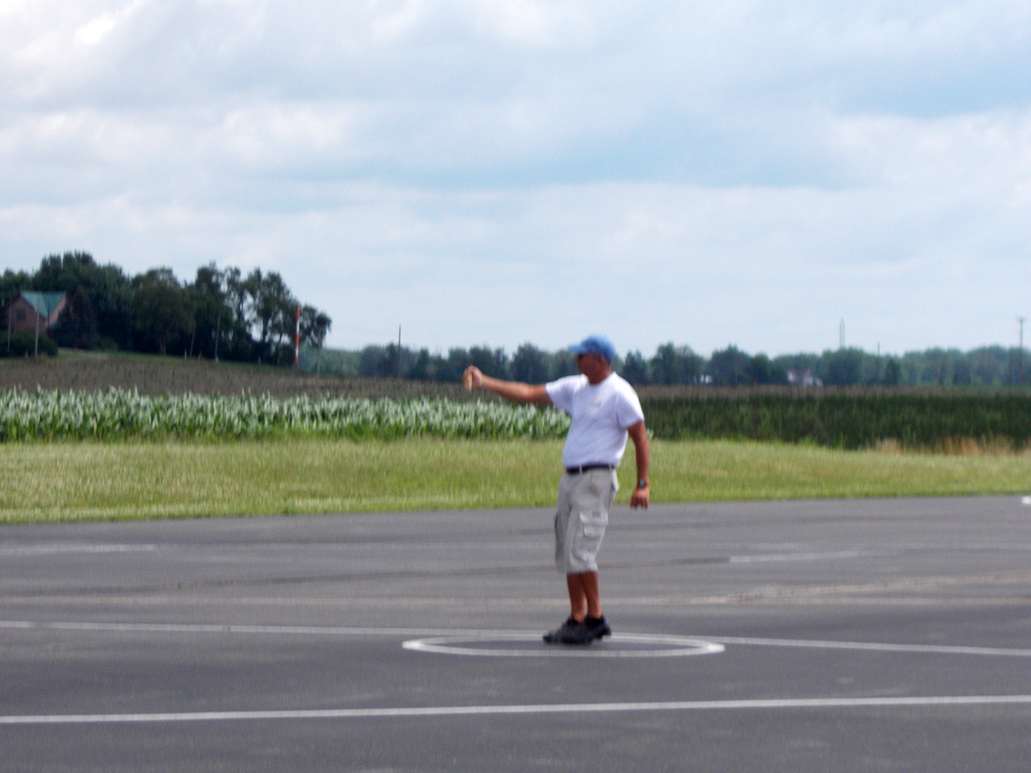 One strange thing that happened Thursday was that Paul Walker’s lines snagged together when he was in the inside square maneuver. He gave some up control to turn the plane 90° in one of the corners. However, when he neutralized the controls so the plane would go straight, it did not go straight but kept on turning. It turned in very small loops until, thankfully, the clips on the end of the lines freed themselves. This gave Paul enough time to recover, saving the plane from another crash.
