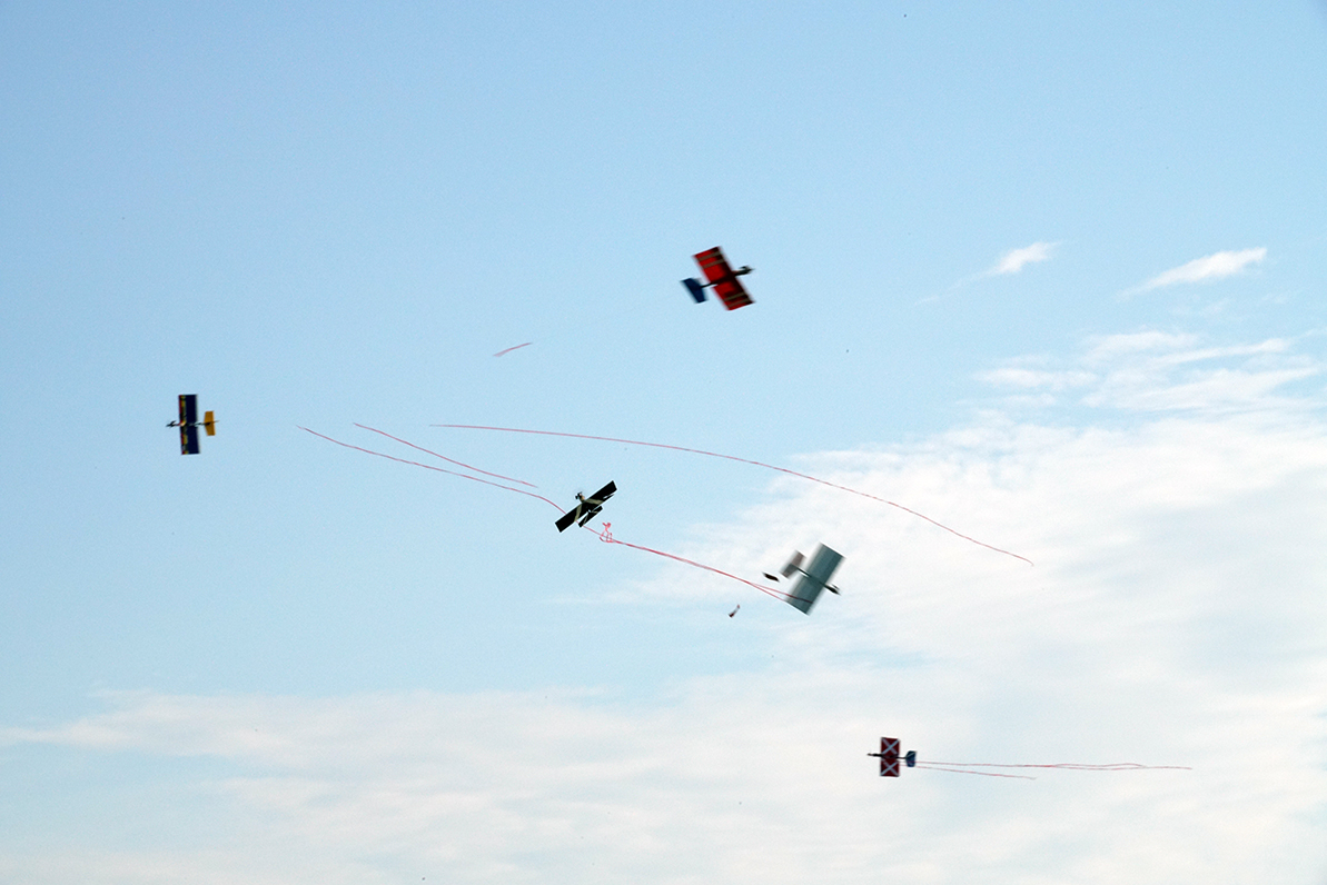 After the rain setback, we finally started Open B and had to use the red flagging tape streamers again. Open B planes can use up to a .30 motor and have no propeller or rpm limits. Most pilots fly a .25 engine because that’s what is readily available. With no restrictions, they were the fastest RC Combat planes that flew at the Nats.