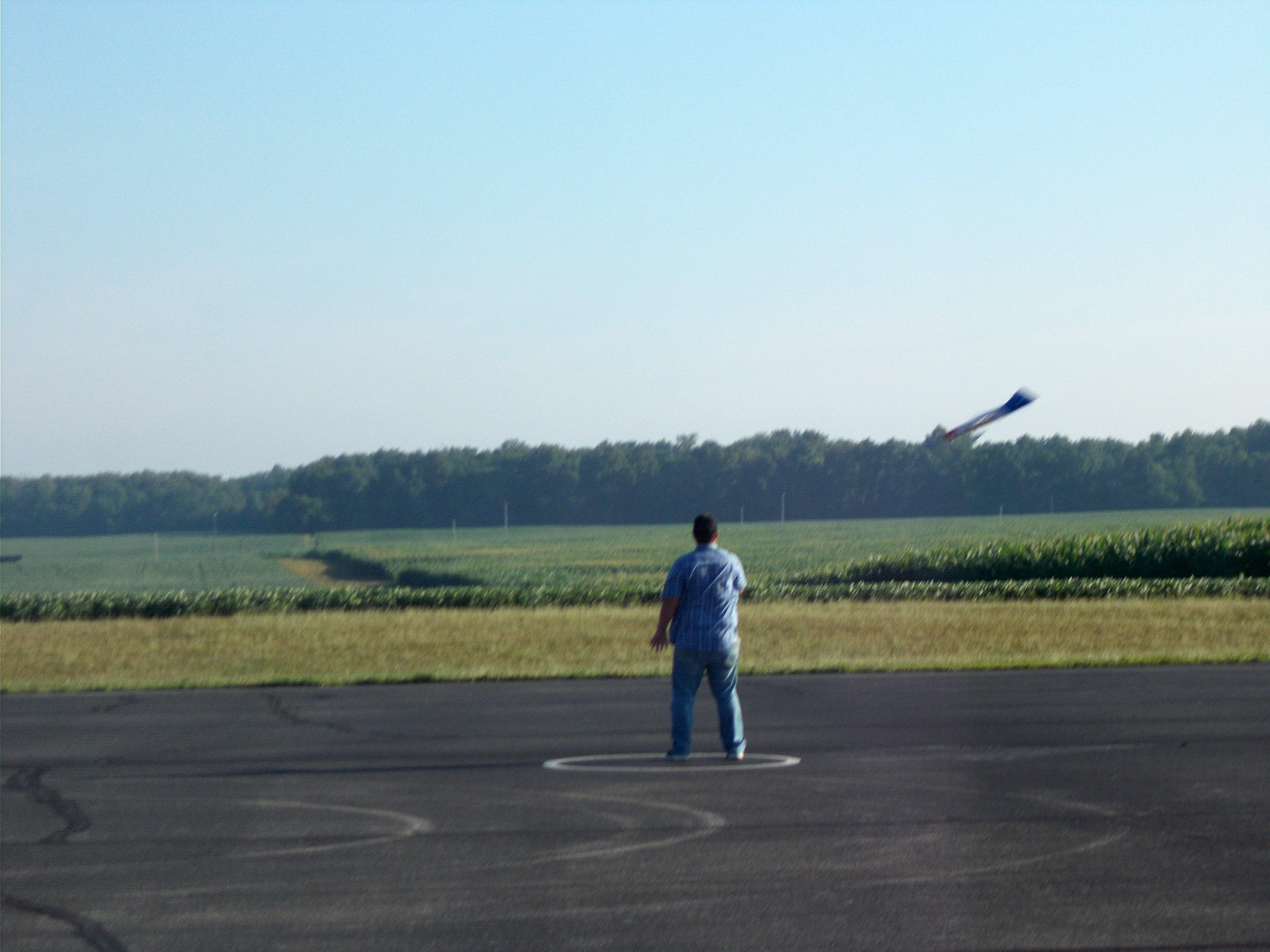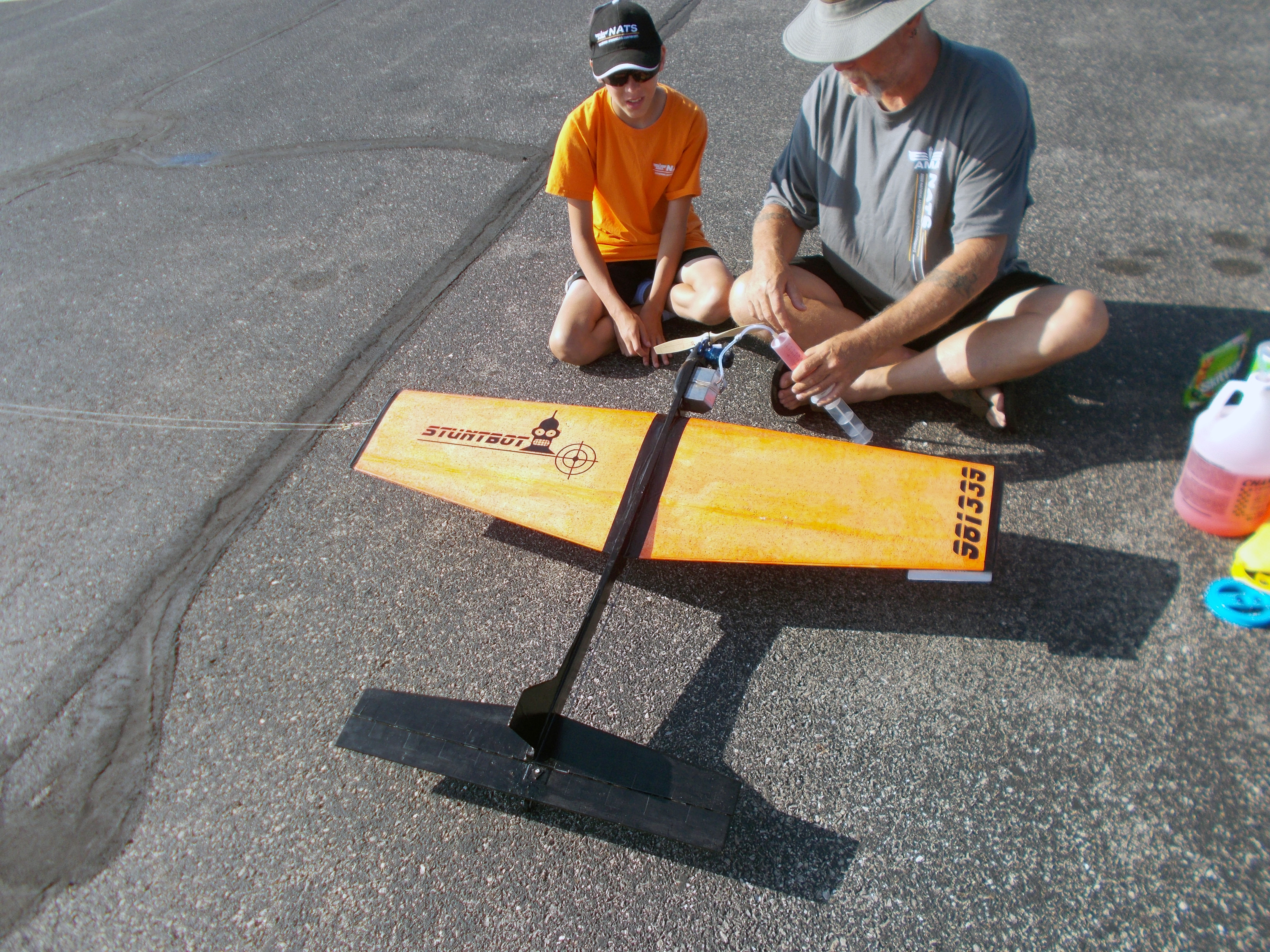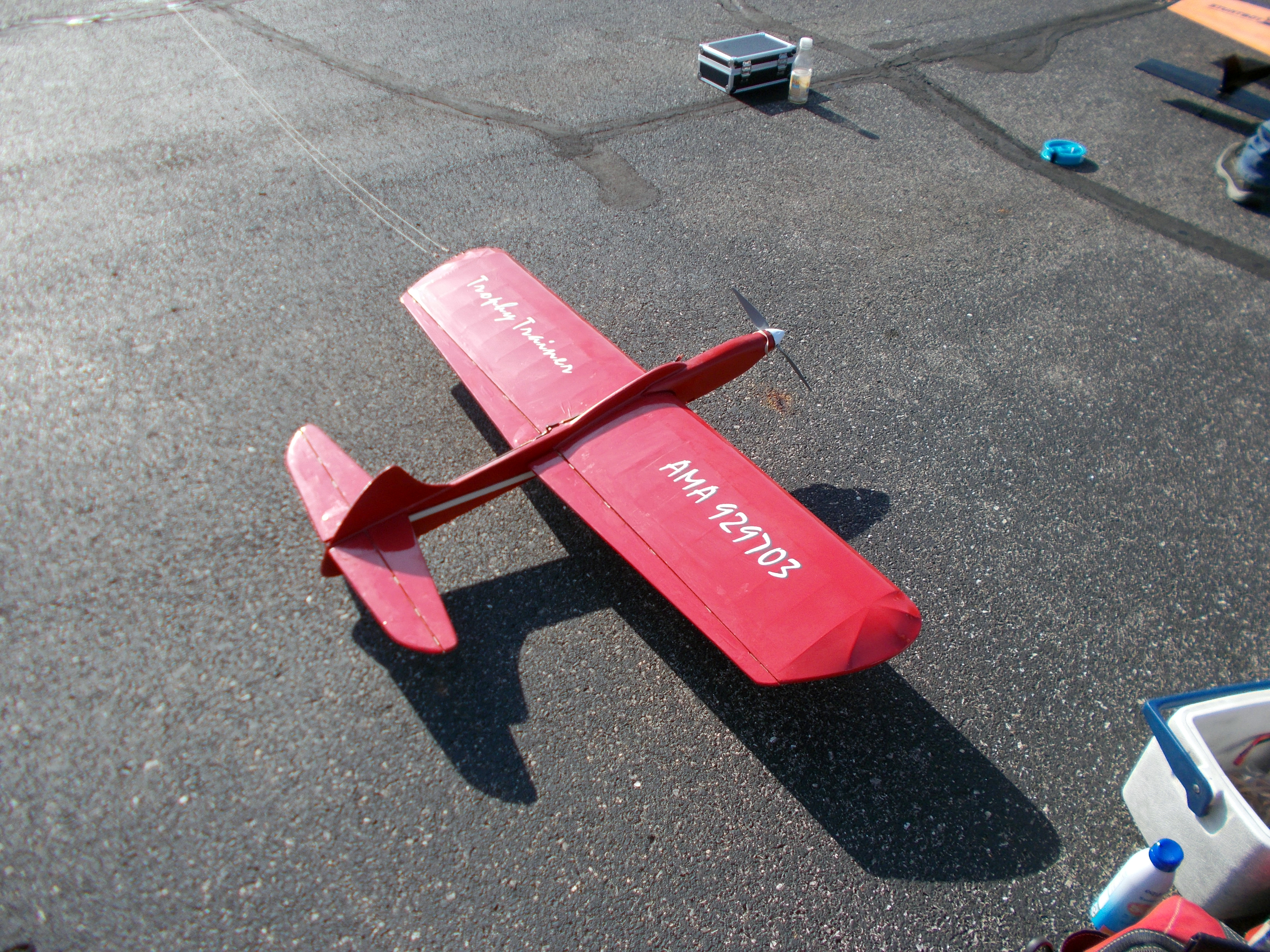However, here at the AMA site, we have helpers and one must disarm first before removing the safety thong. The premature removal of his safety thong resulted in a zero score. Now on top five day, we take the best two out of three flights. This one became his throw away. And, as it turned out, if the flight would have counted it would have been his worst anyway. At least this is a consolation to him knowing it did not make any difference in the outcome. My hat’s off to him again rising to the occasion, not letting this get him down, and using his next two flights to come within a whisker of still winning. However, I still just can’t think of any other Nats where we could not keep up with pachyderm awards.