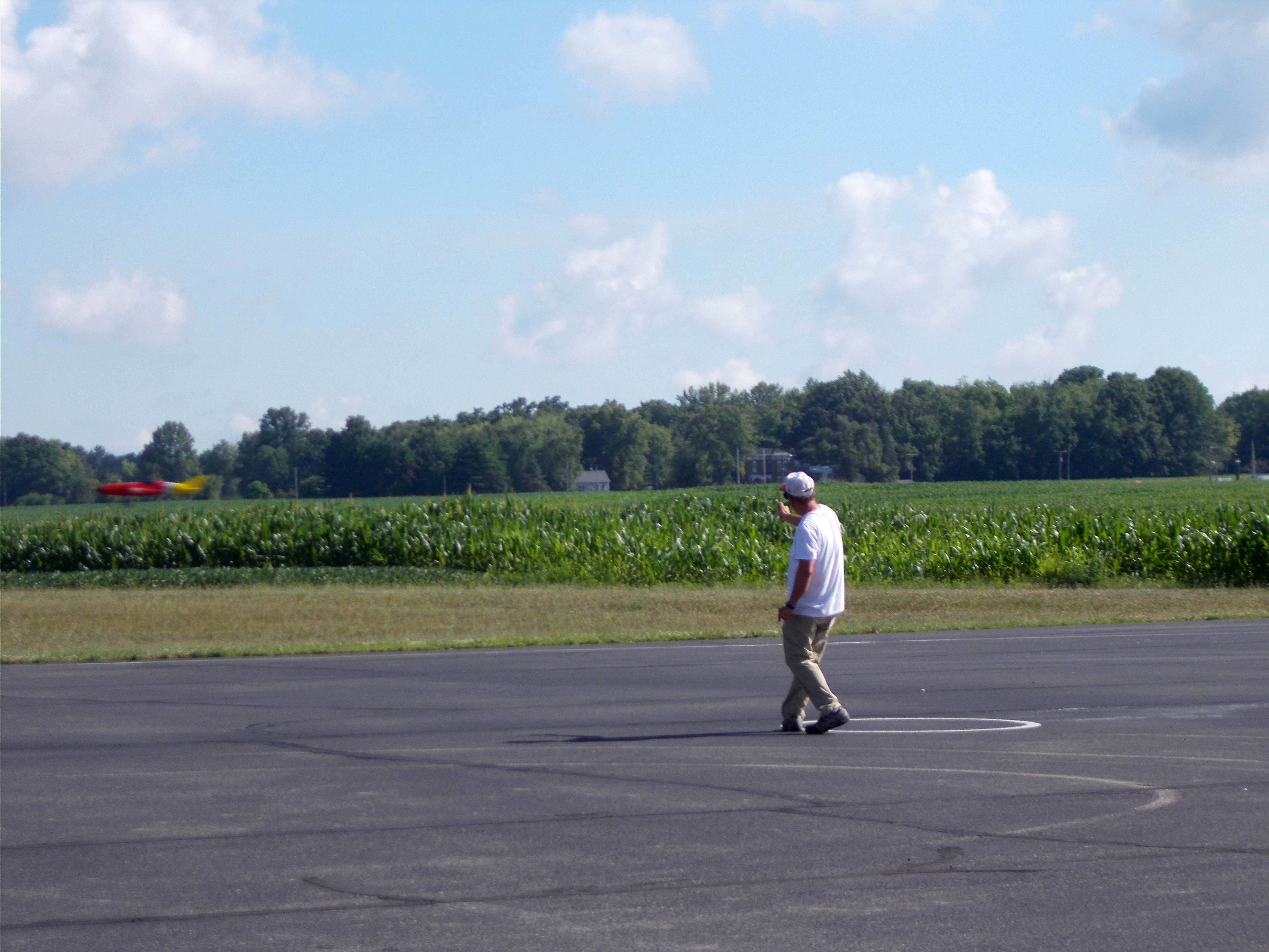 Well this time, Paul Walker had a senior moment when he took off his safety thong around his wrist before his helper could restrain his airplane and disarm it. Paul’s plane is an electric. And the rules state that if the plane is armed, it must be restrained by a pit person or the safety thong must be secured around his wrist. He is like me and flies alone most of the time. We can get in the habit of, once the flight is done, taking the thong off and going to retrieve the plane. You have no choice when you are alone.