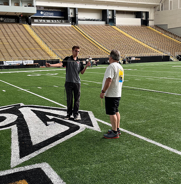 In addition to the obvious hazard of landing on top of a ceiling tile, the Kibbie Dome offers a more subtle challenge. As the building warms, a strong air current forms, which rapidly moves models that come within six feet of the ceiling west to east. We colloquially termed this phenomenon the “jet stream.”