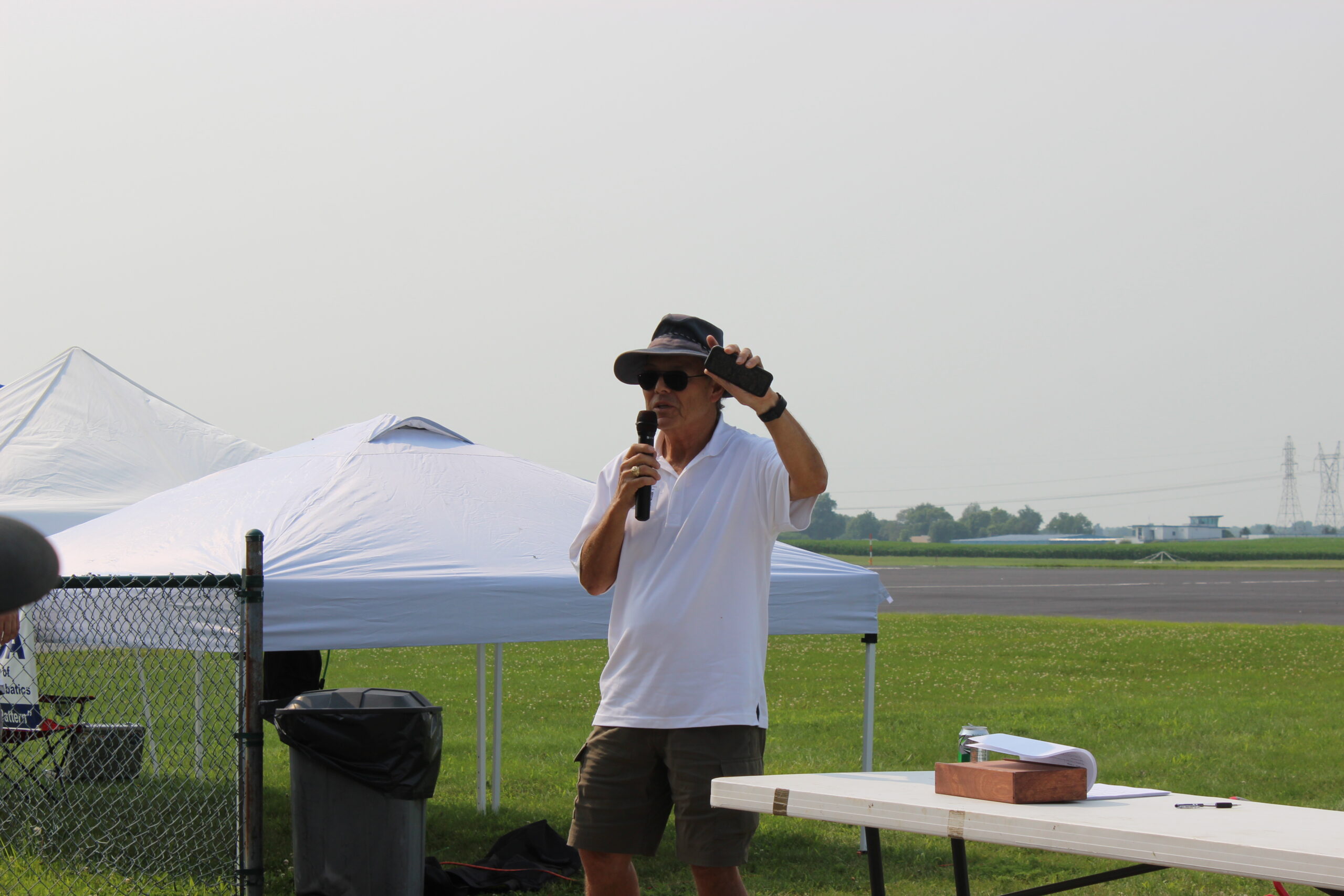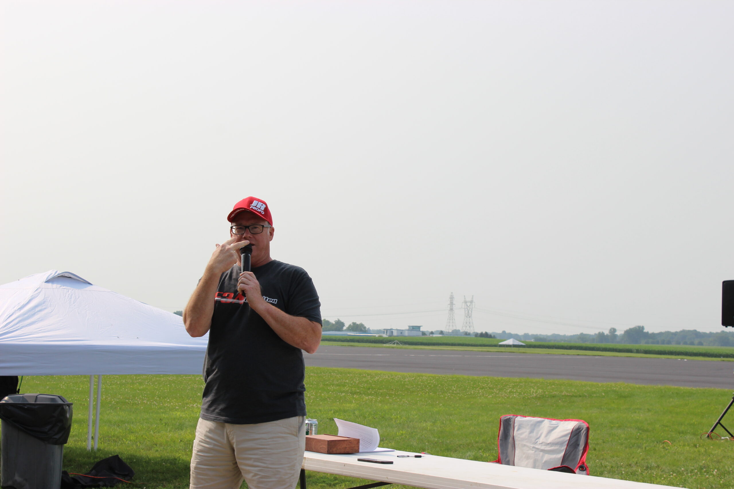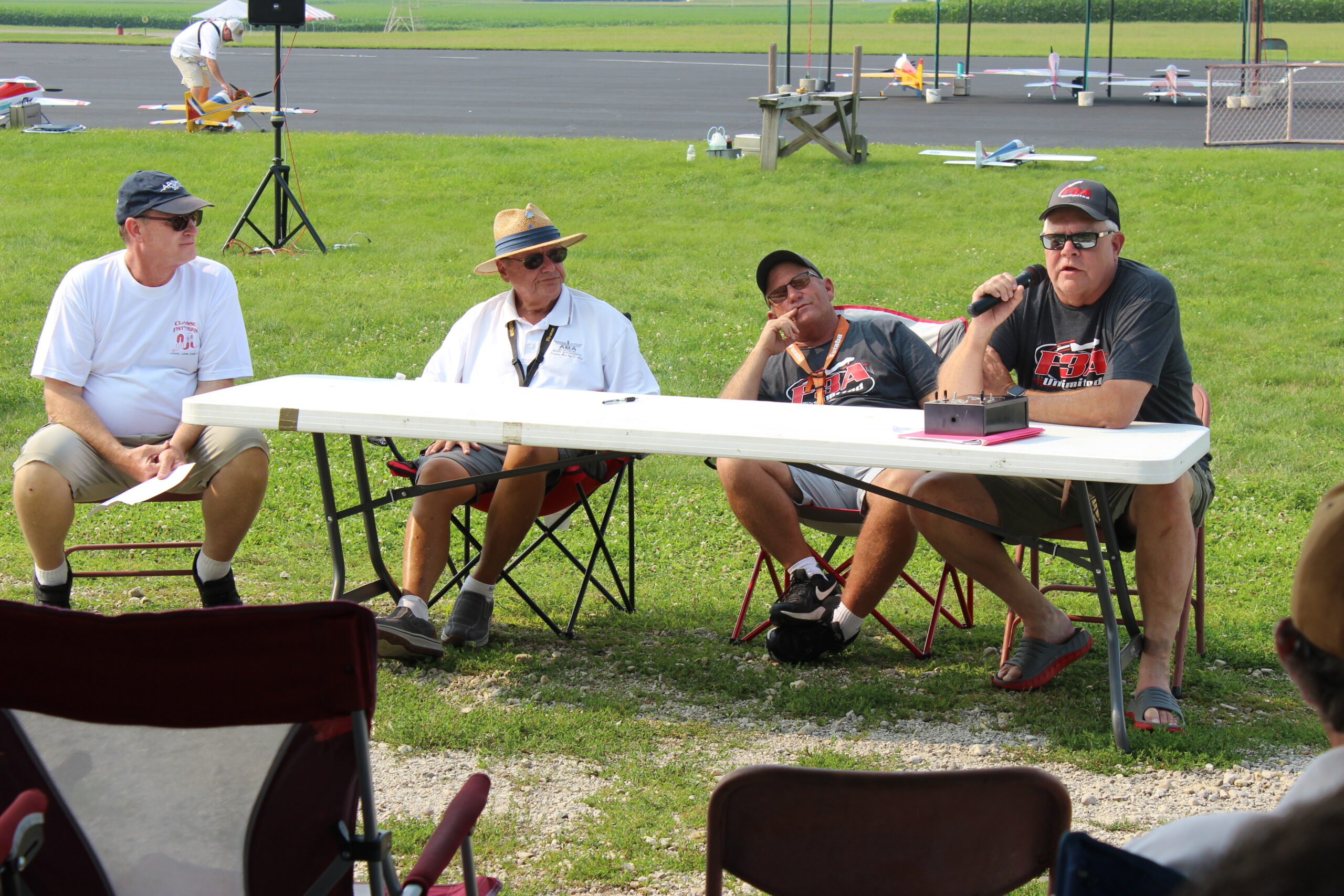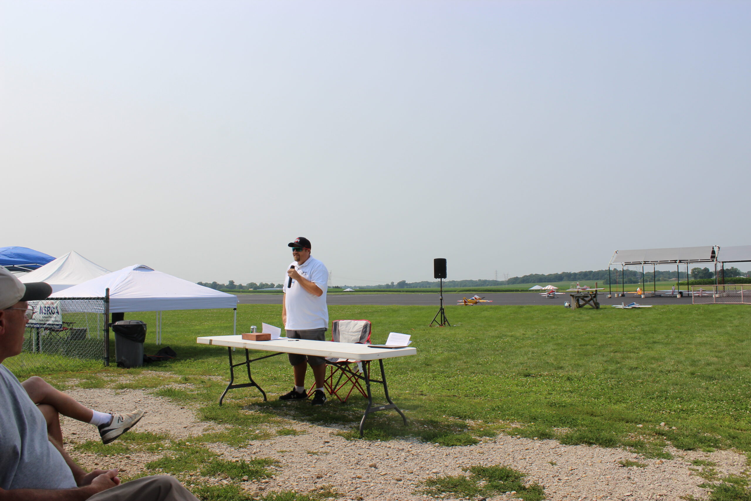 Our first day of the 2021 RC Aerobatics Nats ends with a pilots meeting. Our ED begins the meeting with comments about this year’s competition and gives many well-deserved thanks for all of the support he has been given in preparation for this week. He has drawn a big crowd.