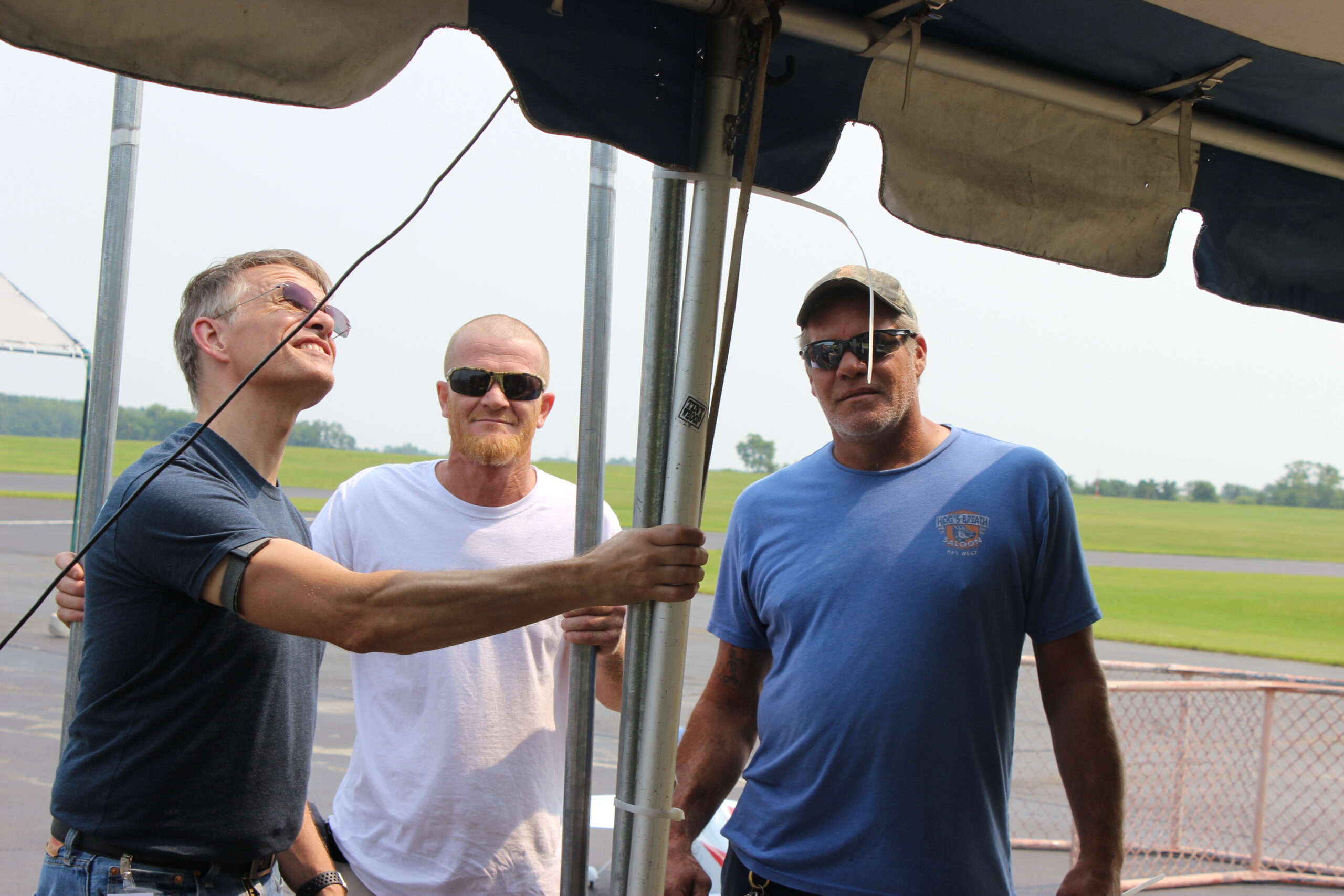 AMA to the rescue. Problem solved! In a flash, two of AMA’s finest appear at Site 3 with the solution to Peter’s problem. Josh Green and Greg Messer arrive with 8-foot-long poles with a square foot attached to the top of each pole for the magnetized antenna. They also brought long and strong zip ties to attach the poles to the already set up shade shelters. Thanks to Josh, Greg and all the dedicated AMA staffers who are essential to a successful Nats.