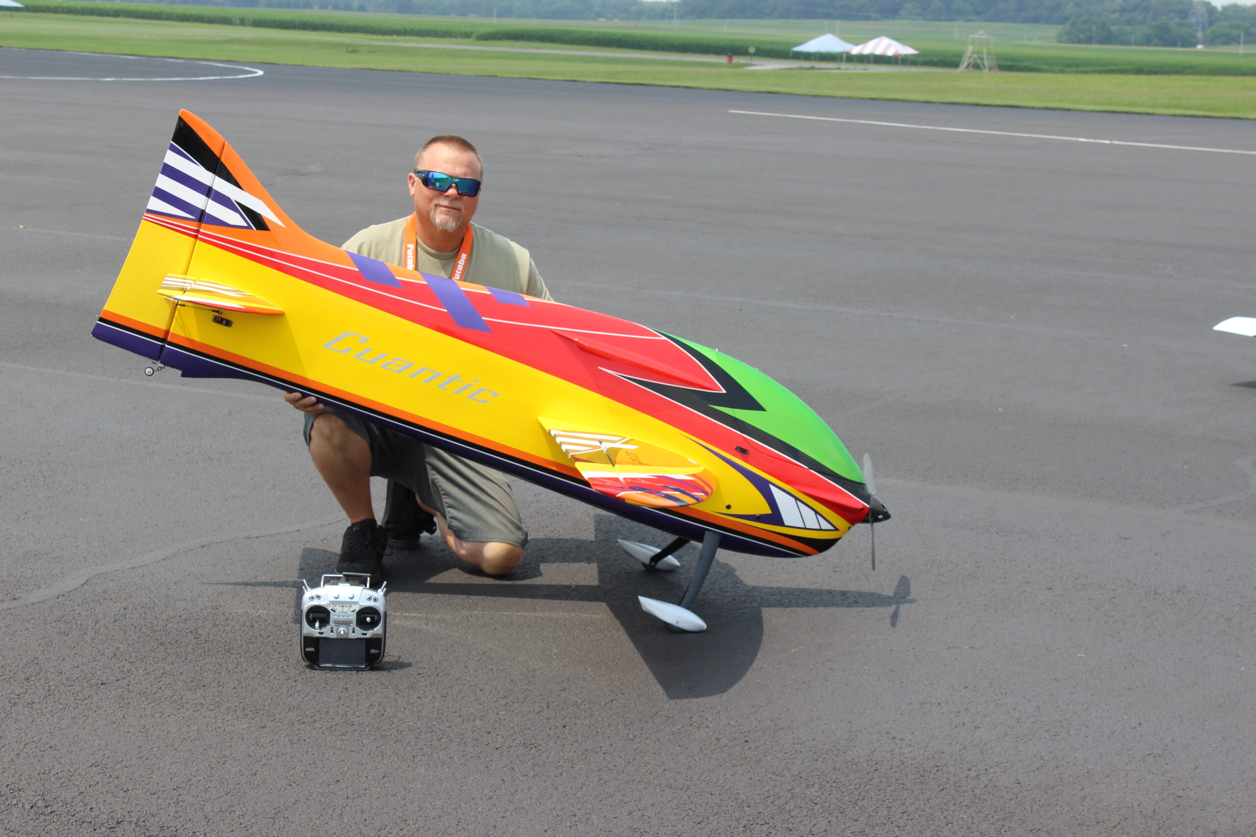 The sister ship to the Cuantic is the Quark. The fuselage is the same, but it is a biplane. Chris says there is no problem with the large side profile in the air. Loving the Cuantic, the biplane Quark was a logical follow up. There are only two Quarks in the world, we’re lucky to have Chris’ at the Nats.