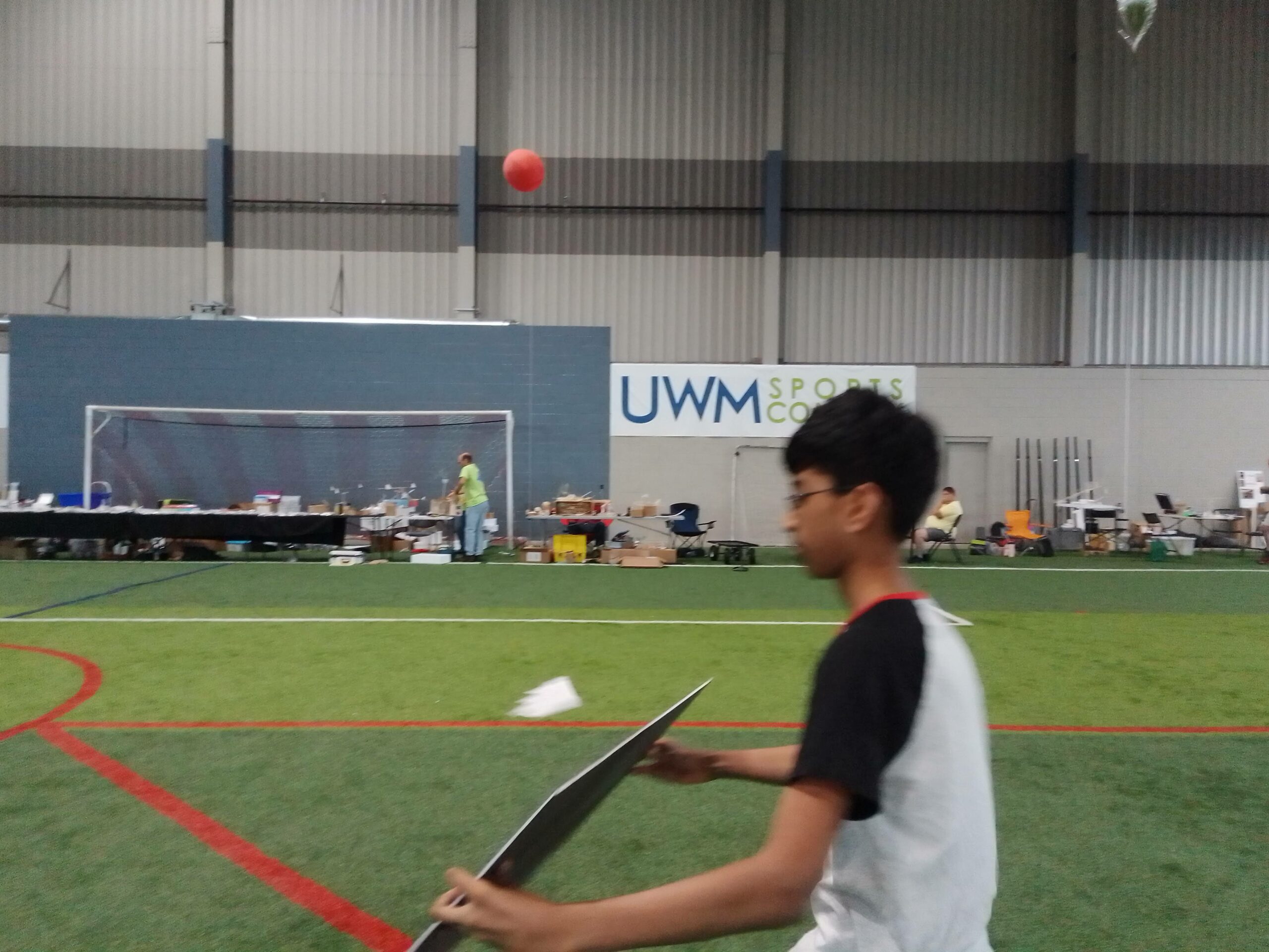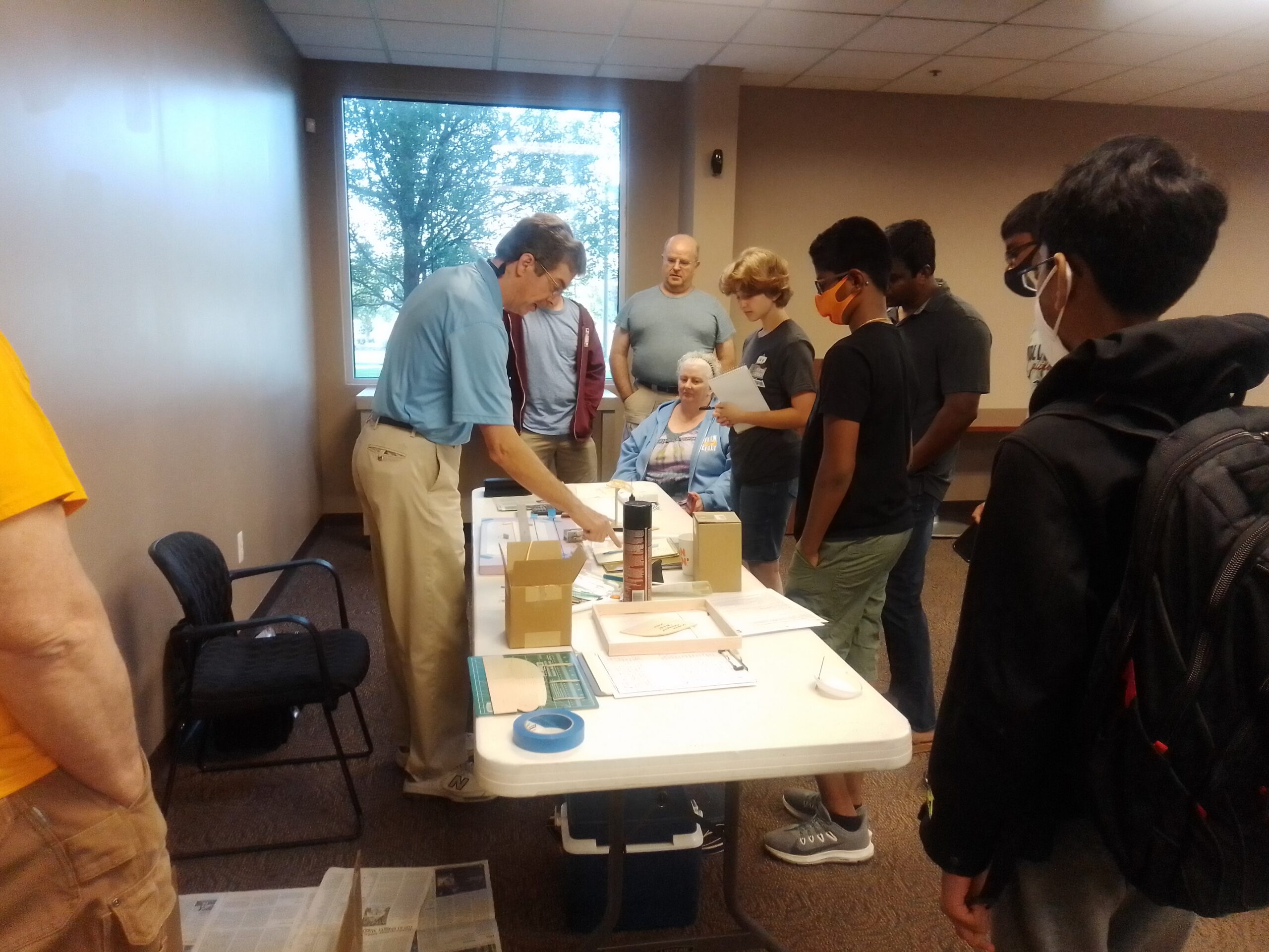 Wednesday, July 21, the National Free Flight Society (NFFS) leveraged its new relationship with Science Olympiad to host 18 students and 10 coaches from 10 middle schools and high schools, mostly from Michigan and Ohio, but also from as far as Austin. Science Olympiad is a scholastic science competition that includes an indoor flying event.