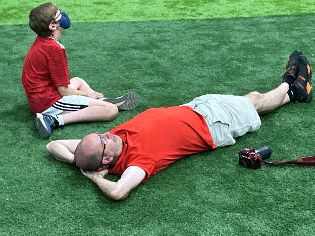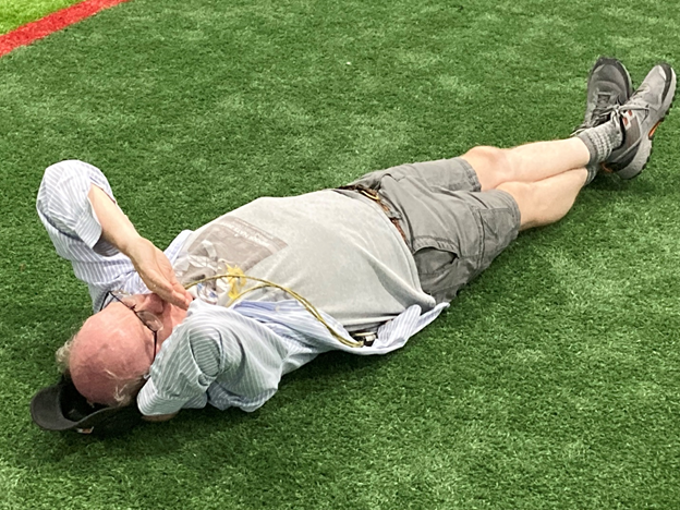Here are some favorite lounge poses. The most popular is the “laid back.” It's crazy how a firm, flat back feels after two days of being up, standing, and craning your neck up. Kudos to the artificial green stuff guys.
