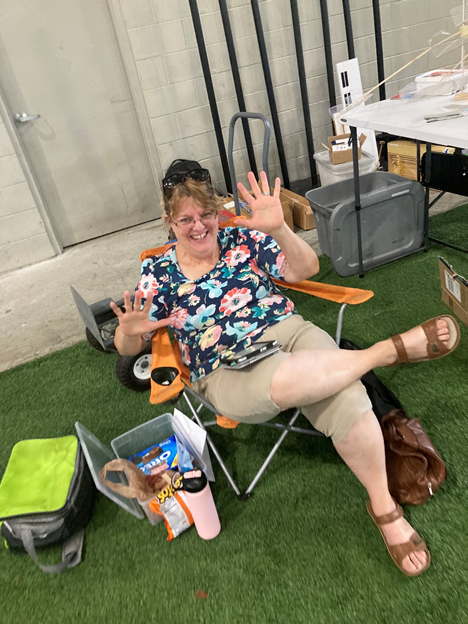 She has it down—iPad, Netflix, cooler, OREOs, snacks, snappy outfit for anything, comfy shoes, and she clearly knows Tai Chi so stay away when she Is finishing up season 7 of GOT or you die now.