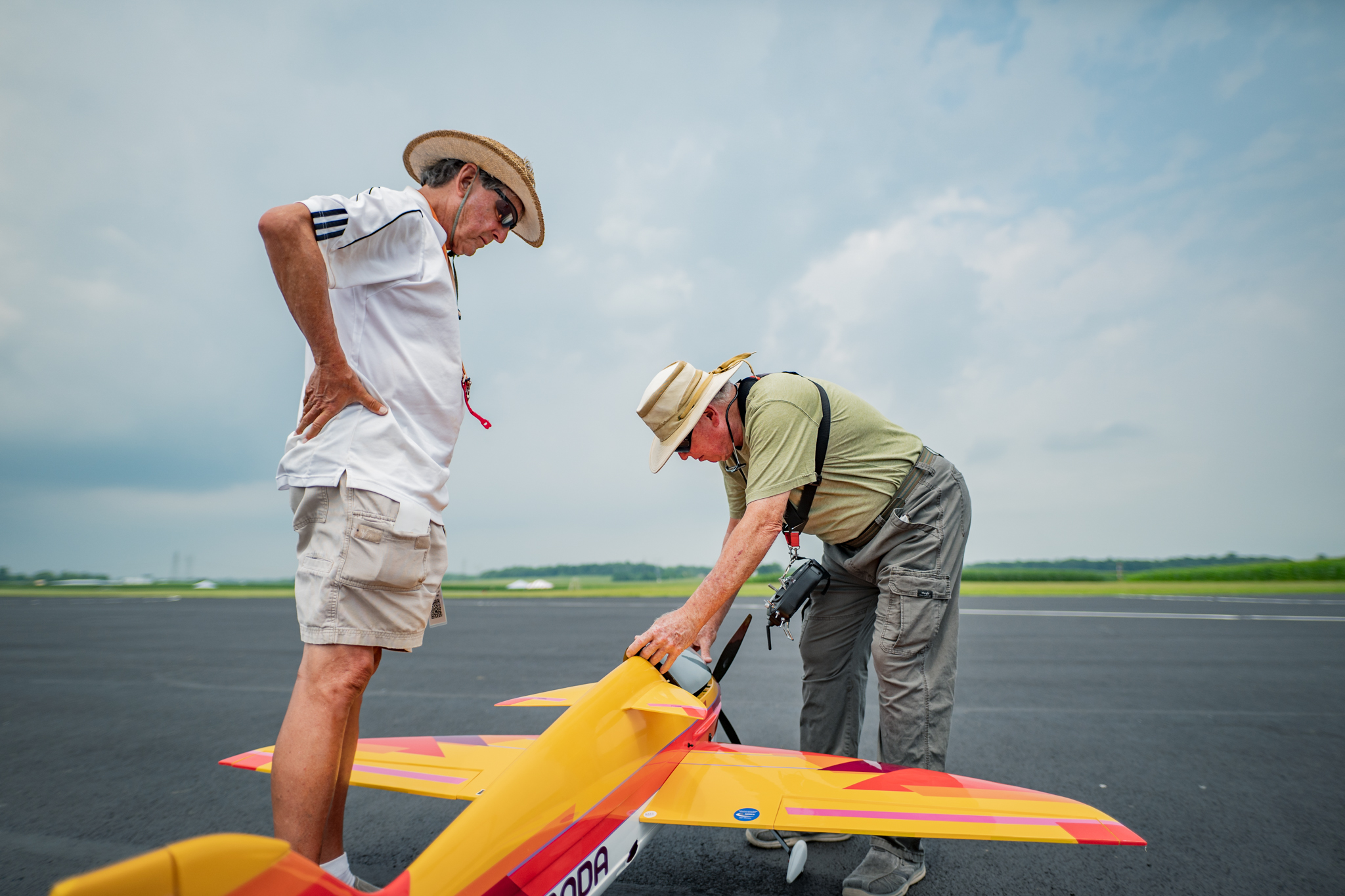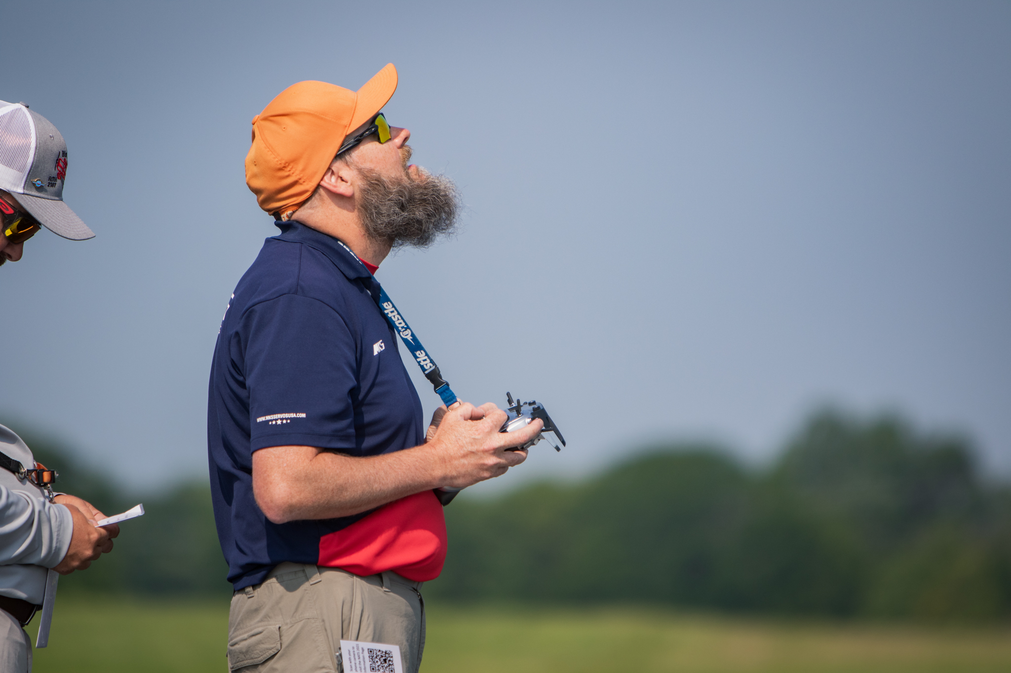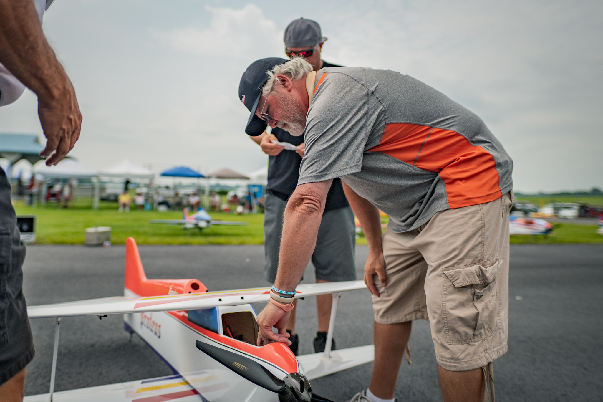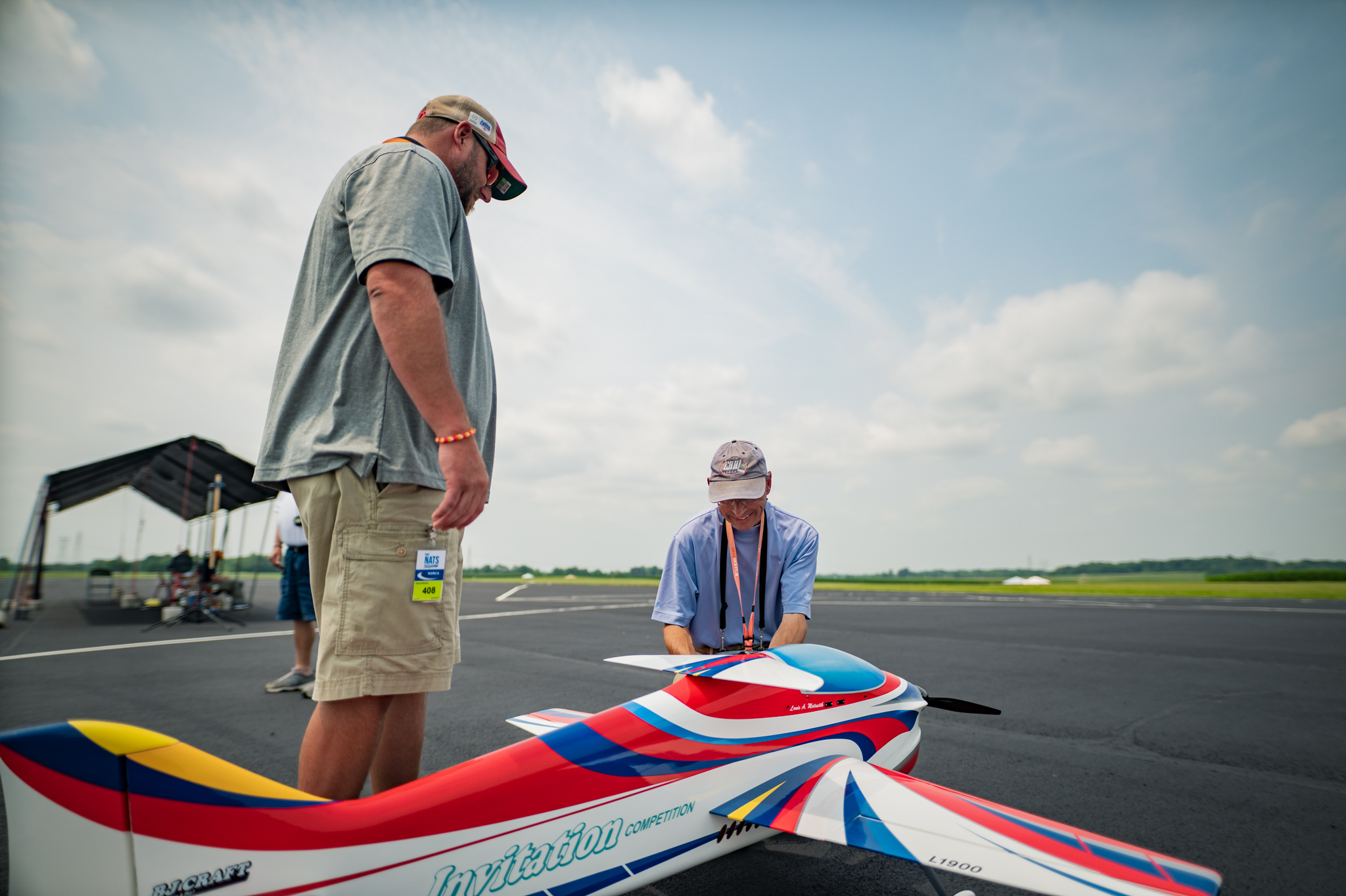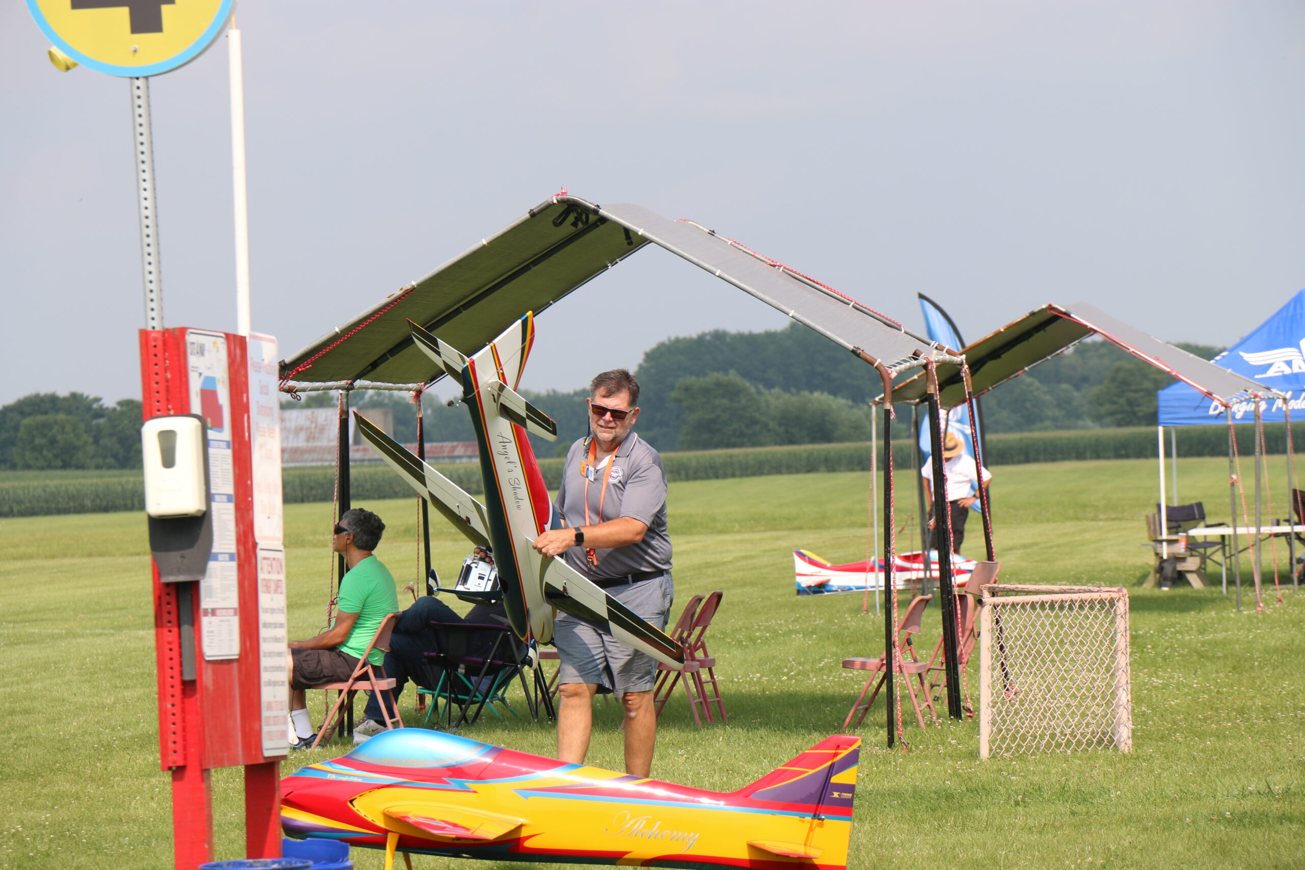 He was at Toledo in 2018 and talked to all of the key people. He came home with a Vanquish and also flew the Acuity, Nuance, and an Epilog. He’s been hooked ever since. We are all so happy that this pleasant, mild-mannered man easily has moved us through a two-hour delay on day 1, the wild delay on day 2 with the helicopter crop dusting, and a major storm to punctuate day 3’s afternoon.