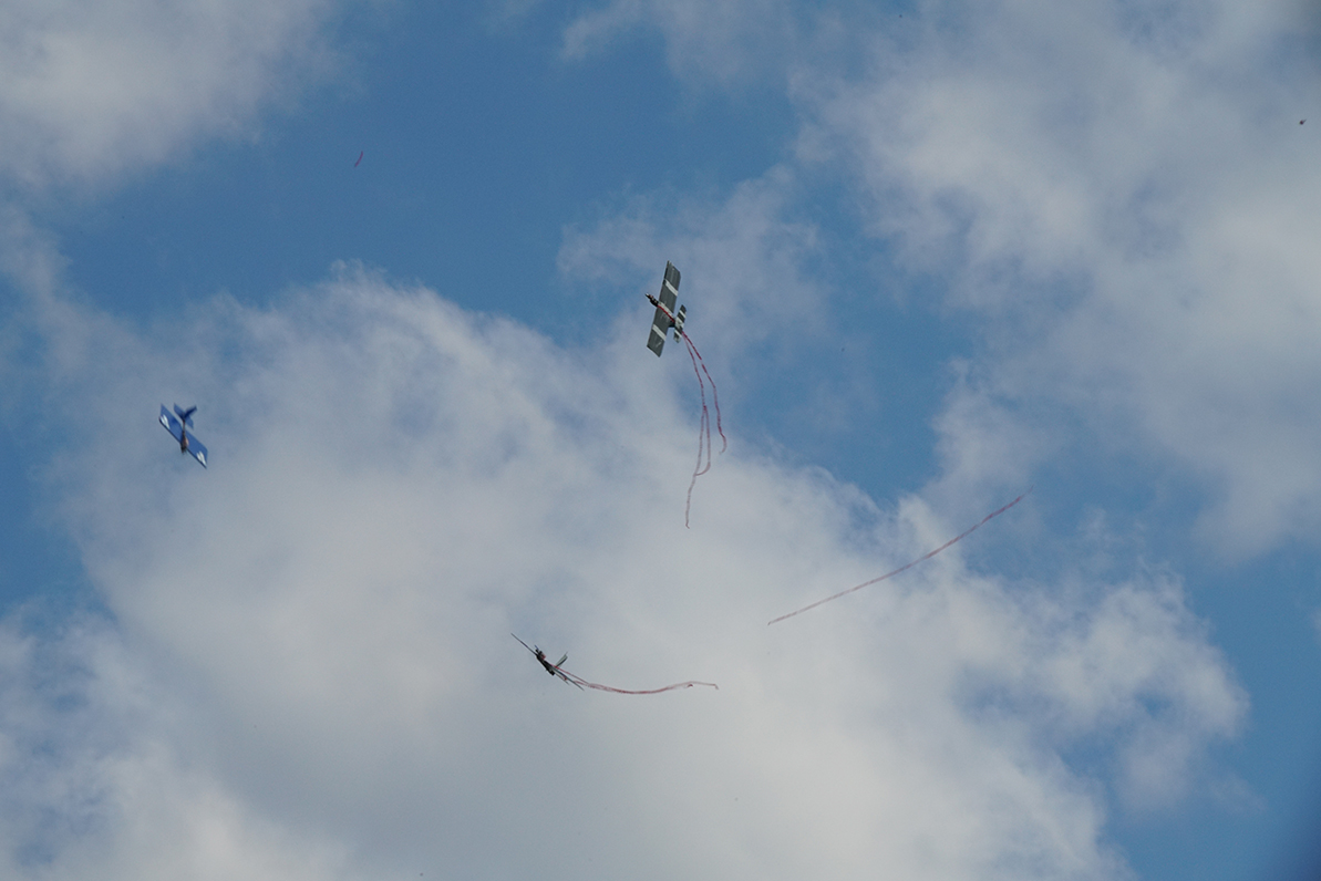With only three pilots, you would think there wouldn’t be any midairs. Well …15 seconds into the first round, crack! Luckily, the planes were able to recover and continue with the round. With the durability of the GNAT design and few pilots, we flew through the rounds quickly from the start.