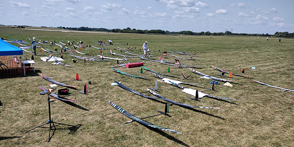 All four corners of the country are represented as well, with pilots from Southern California, Washington, Florida, and Maine, with dozens more in between. F5J is simply a timed event with pilots flying in a 10-minute window with a scored landing. Launch at the starting buzzer and be on the ground before the final buzzer; otherwise, you forfeit landing points. Landing points are earned by landing on an incremented landing tape with a maximum of 50 landing points awarded. You launch at the buzzer and time starts when the sailplane leaves the pilot’s hand. This takes a second, so the actual maximum possible time is 9:59. Every pilot is striving for that 9:59-minute flight and 50-point landing.