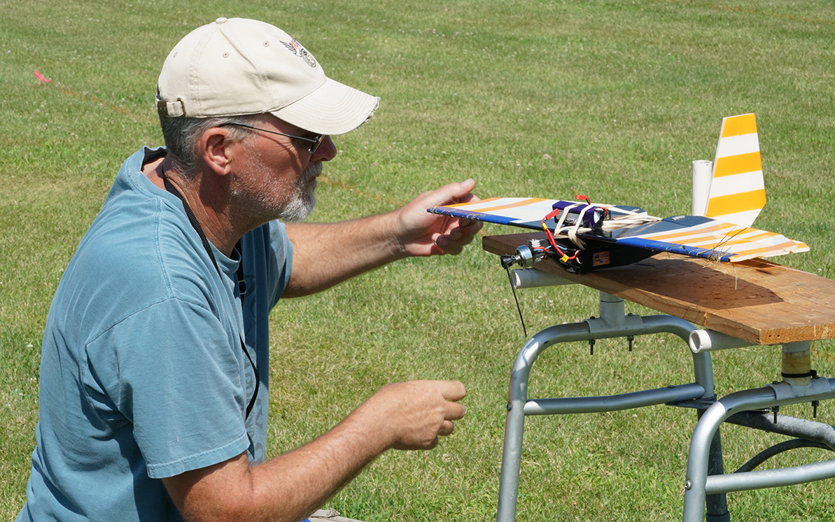 There were varying designs being flown Sunday. A couple of delta wings saw action along with some other foamboard creations. Heath Bartel’s HB1 is well designed and utilizes a 3D-printed fuselage. His original design used a foamboard wing, and now he is experimenting with foam wings. Will Drumm was flying a retrofitted Hat Trick Arrow with the biggest wingspan out of the planes that flew. Each build has its own pros and cons. The class is still developing as pilots are trying out new designs and getting closer to the “perfect” airframe.