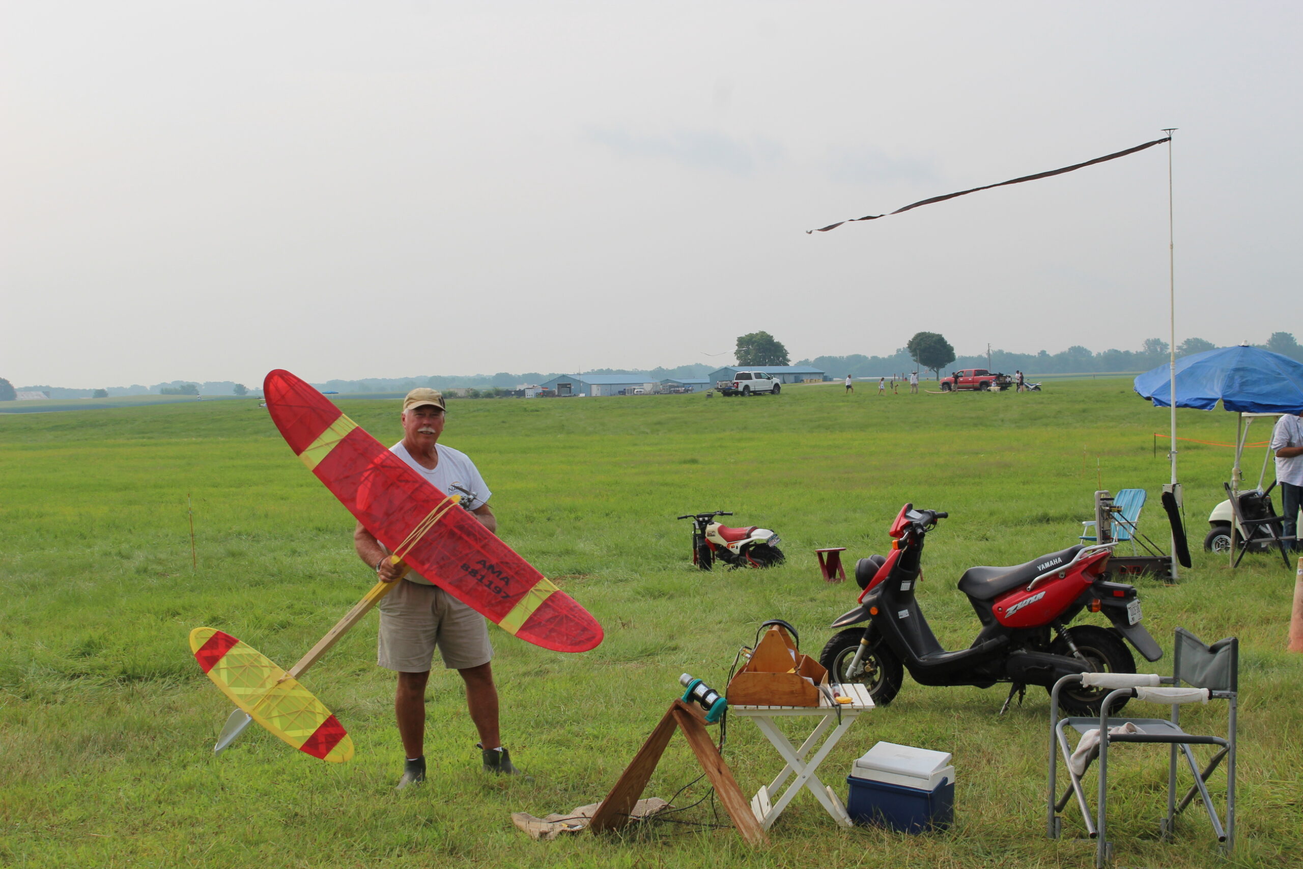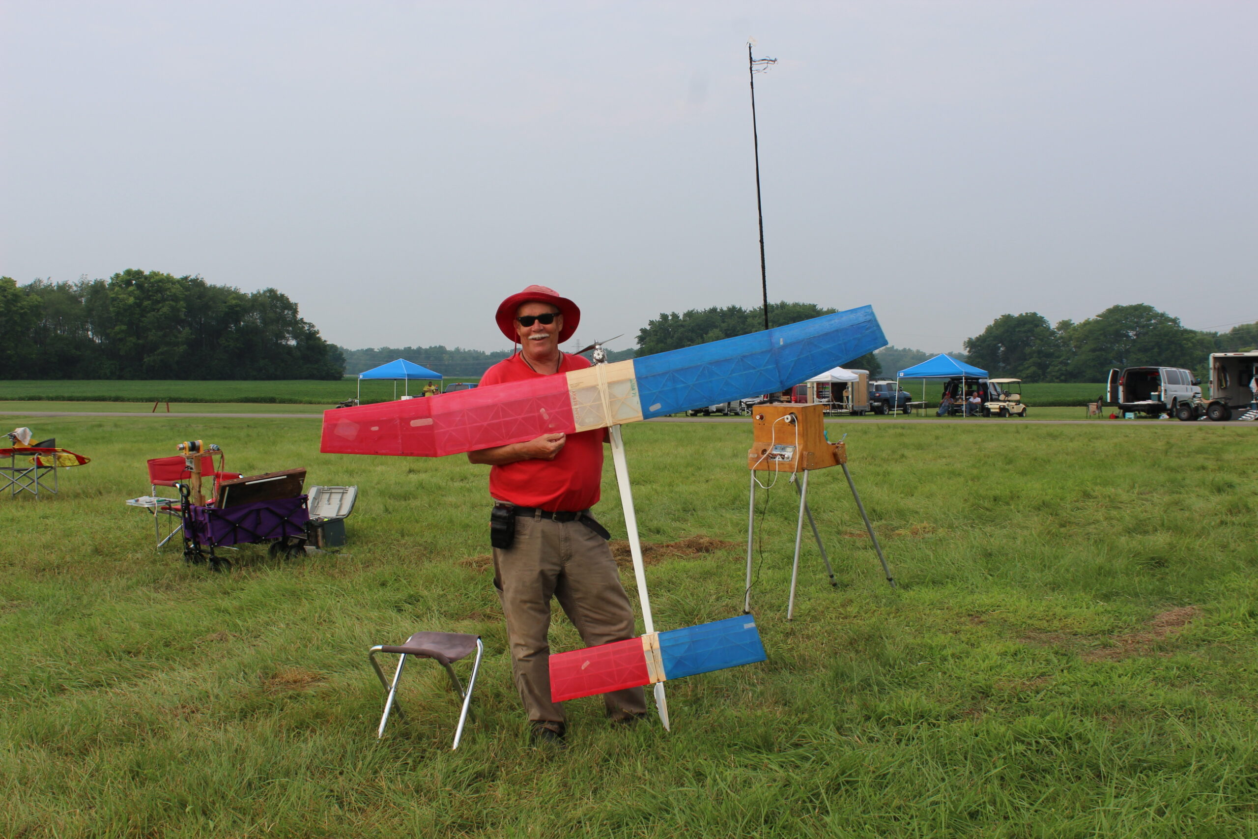 Somewhere in the day PeeWee 30 was flown, although I did not see where, but it is a fun event. Only two fliers competed, Dick Kacmarsky and Josh Finn, with scores of 591 and 480 respectively.