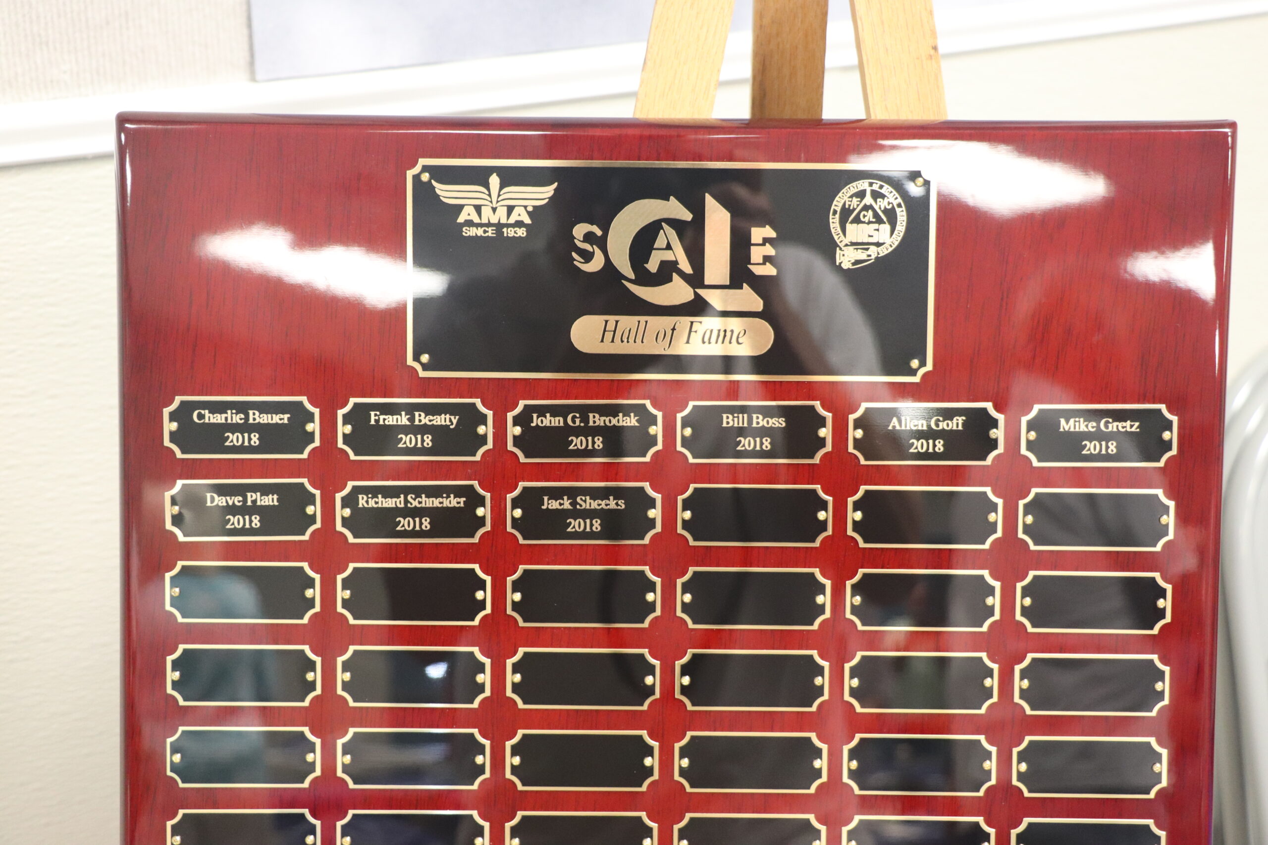 Names will be added to this plaque this year. It is on display at the National Model Aviation Museum.