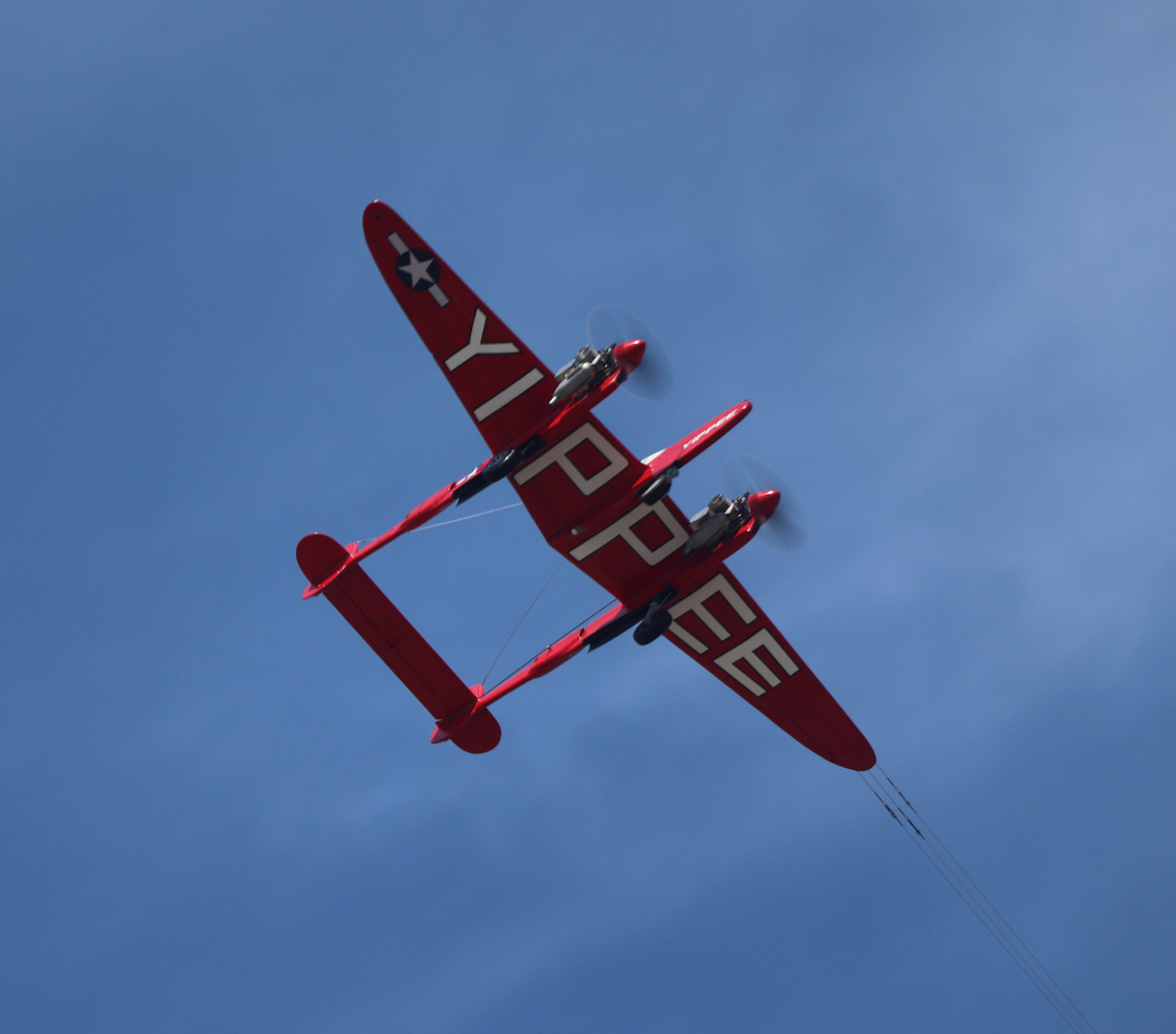 Ron Duly flew a P-38 model in Fun Scale with the Yippee markings that he acquired from another modeler.