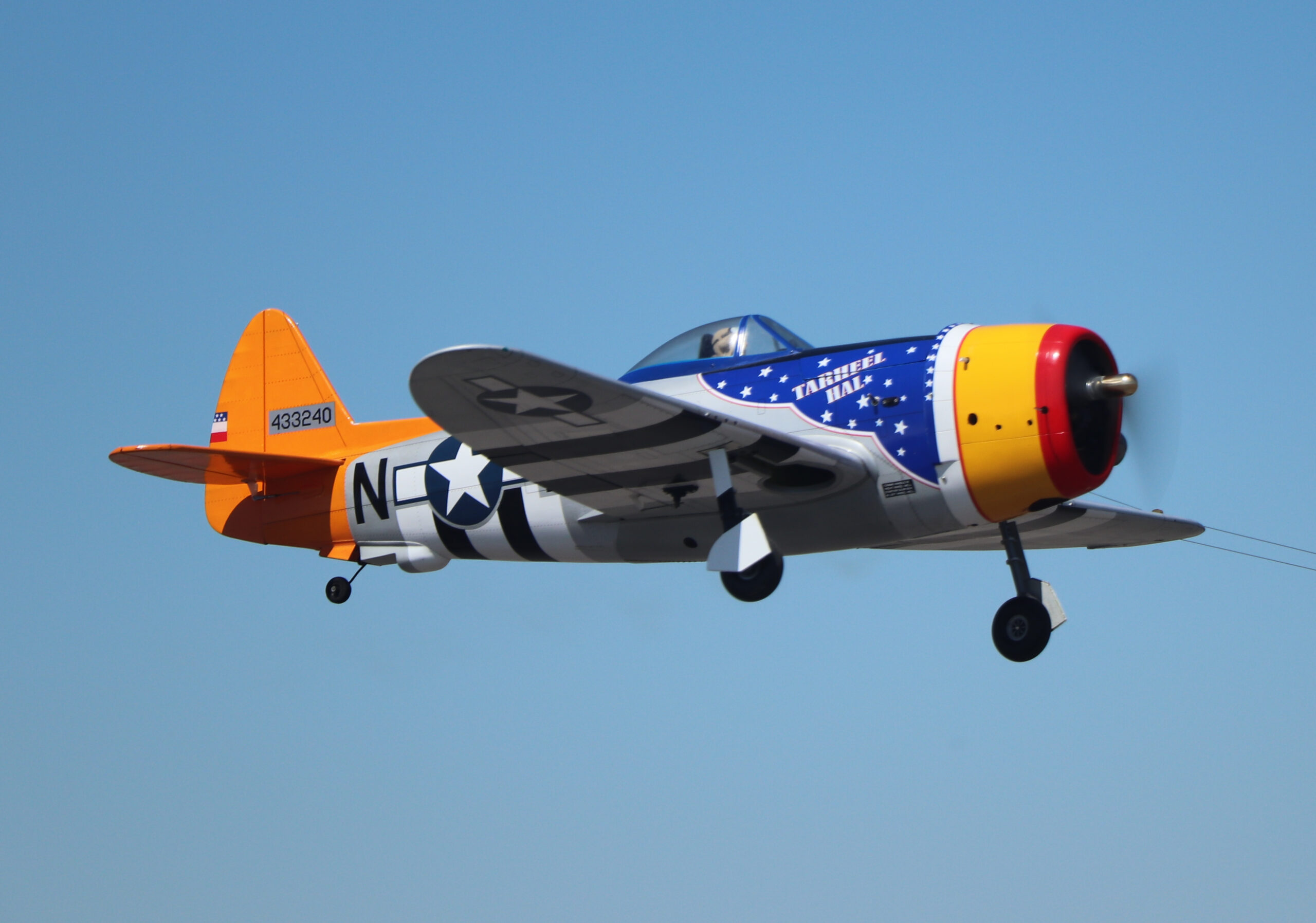 Burt Brokaw’s P-47 with a HB-61 motor and flaps that was built from a VQ Models ARF kit.